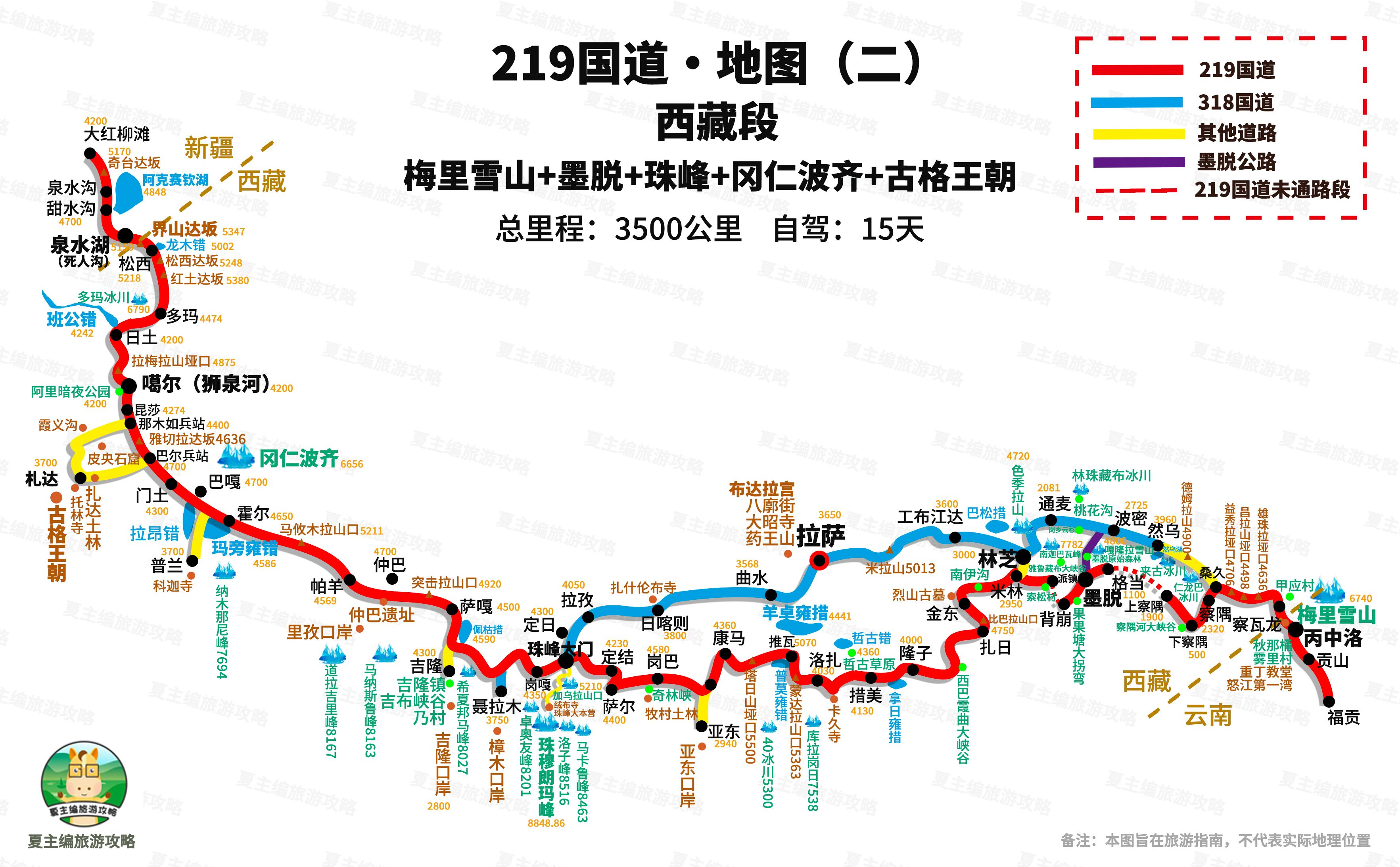 2、西藏段:总里程3500公里,自驾约15天。
