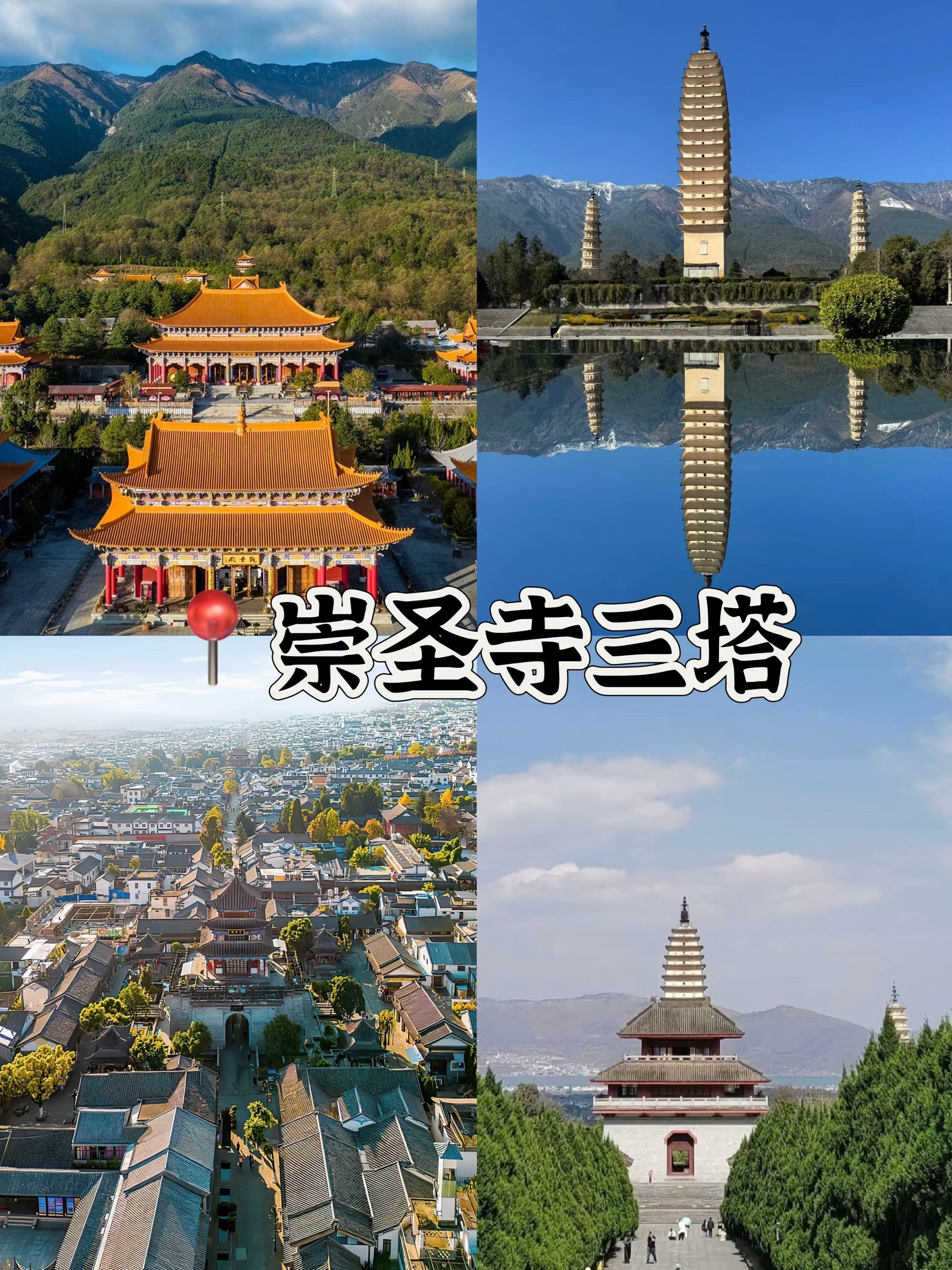 :三塔倒影公园、崇圣寺主殿、三塔全景