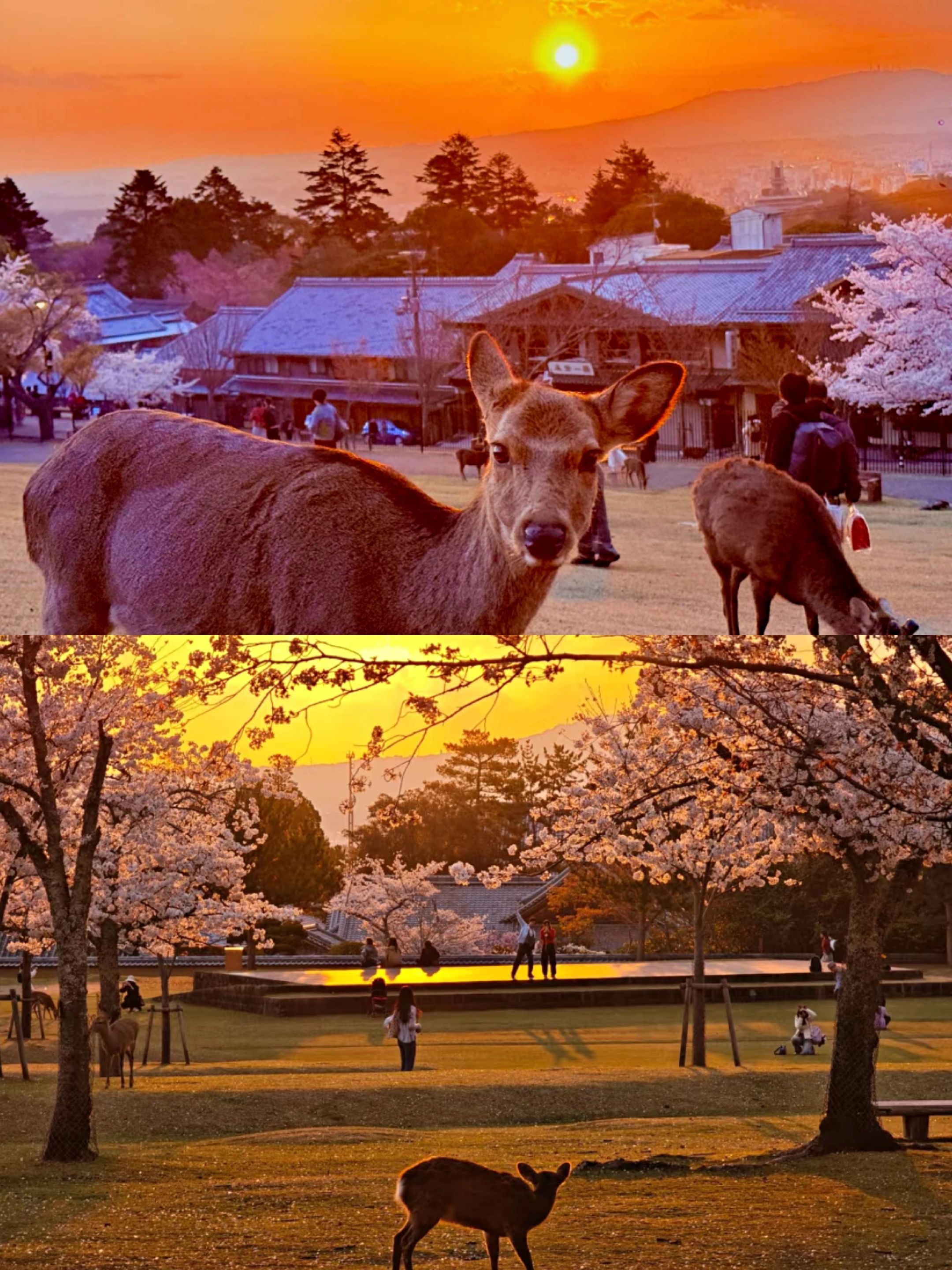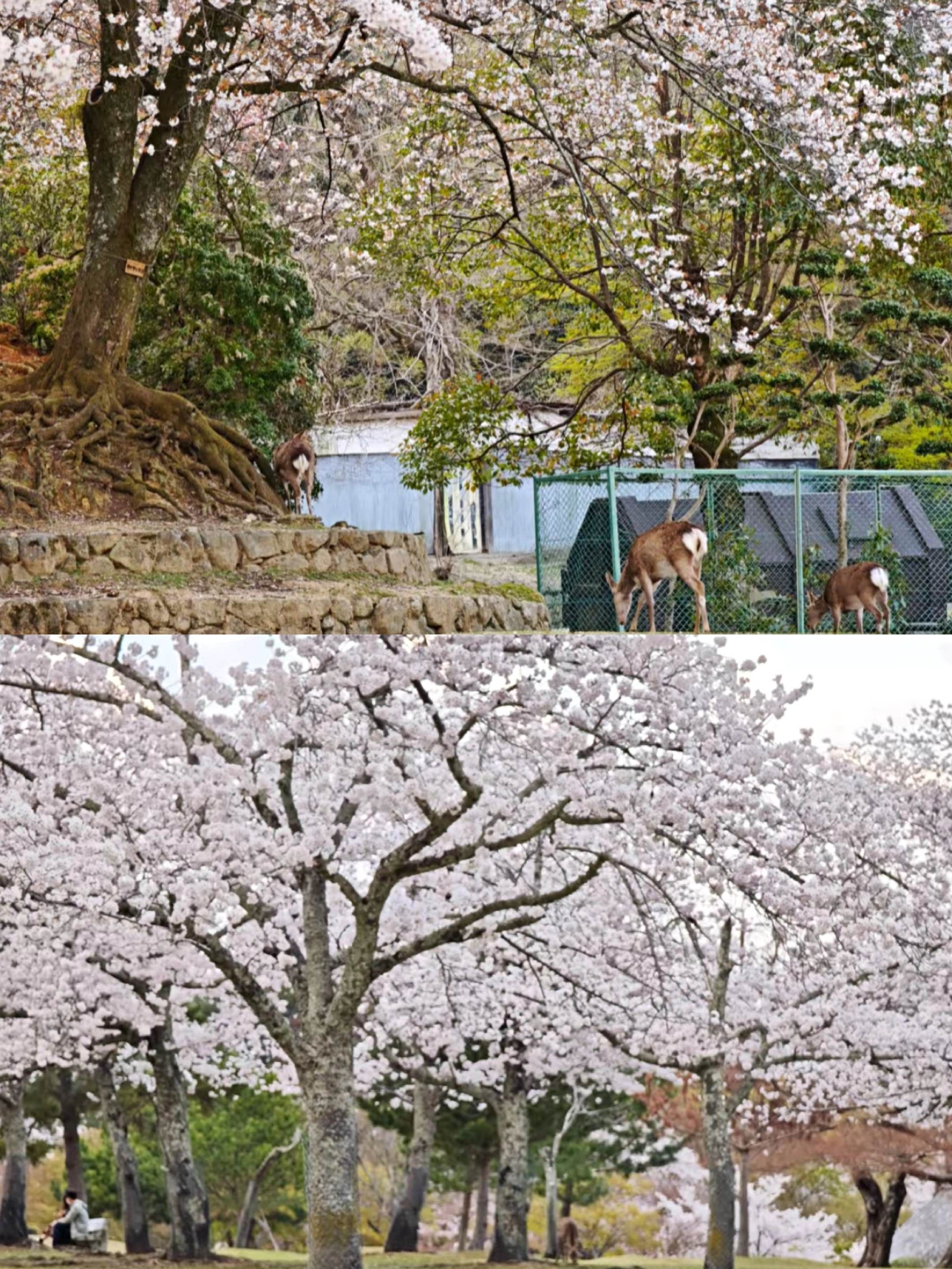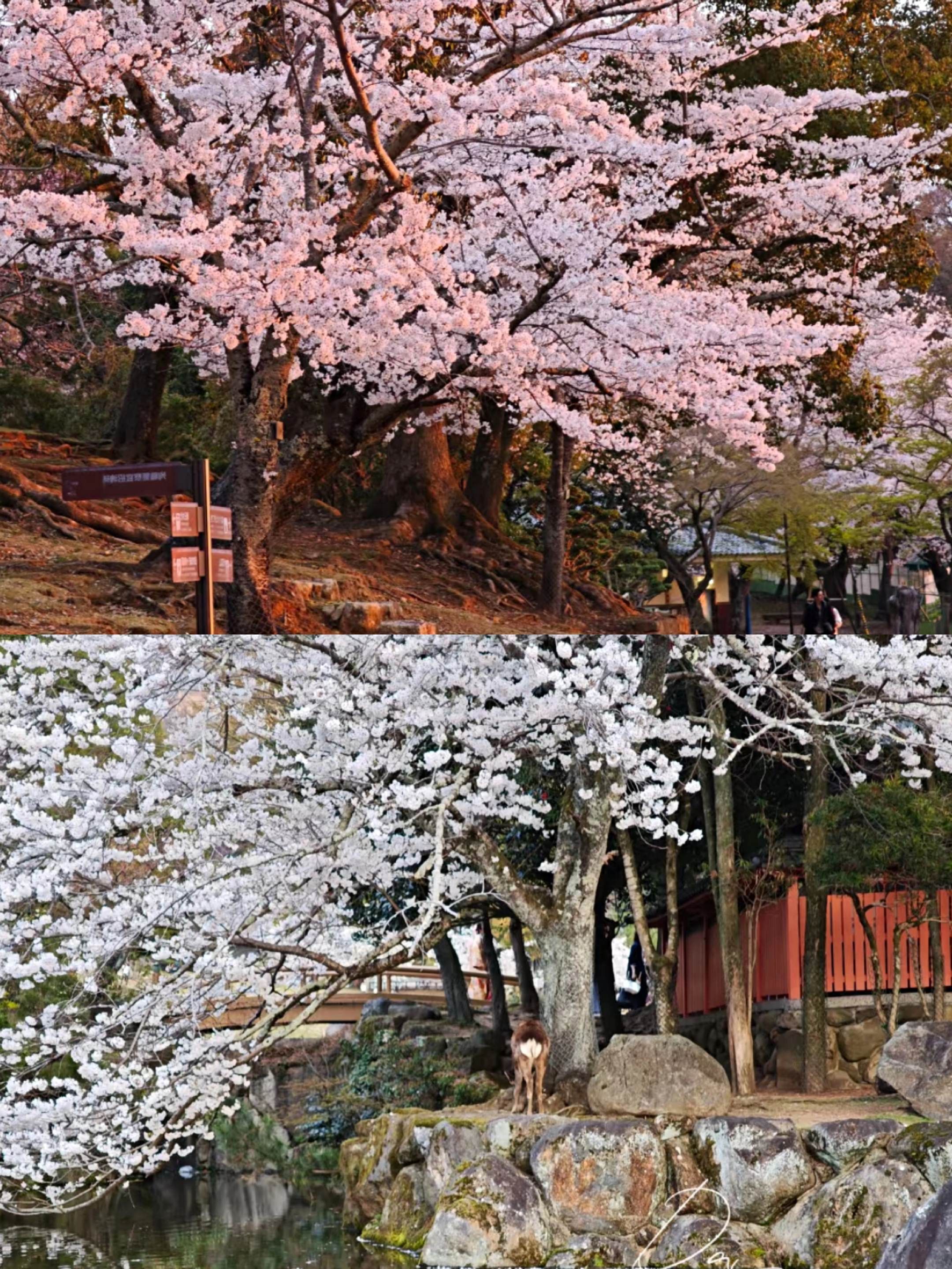 亮点特色:经典赏樱地,樱花与鹿群共舞的独特画面。园内约1,700棵樱花。结合东大寺、春日大社等世界遗产,形成古寺与樱花交映的经典场景。