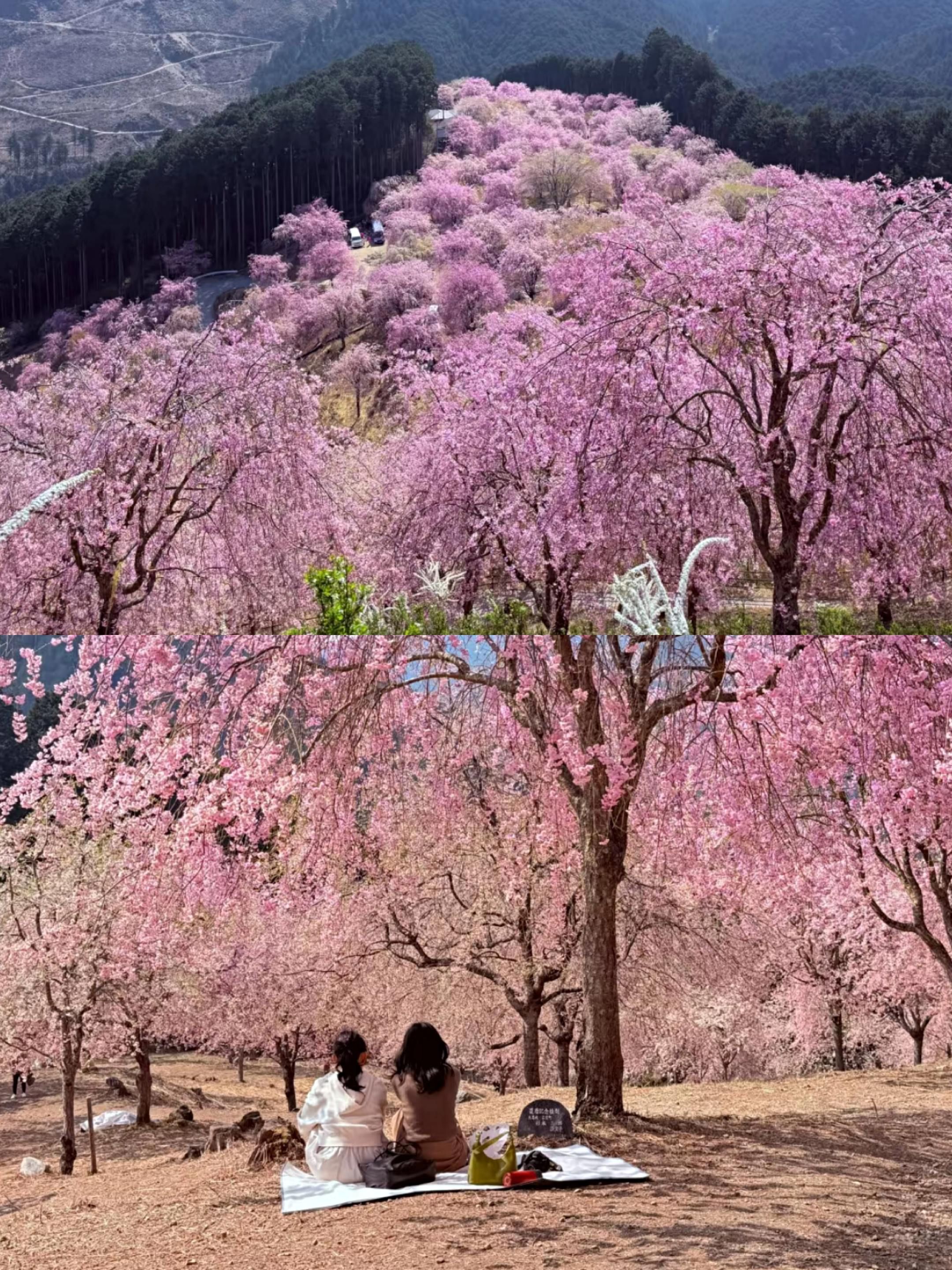 亮点特色:登顶俯瞰樱花如粉色云海,与奈良公园的樱花连成一片。山间步道两侧种满染井吉野樱,山顶鹿群温顺,适合拍照。