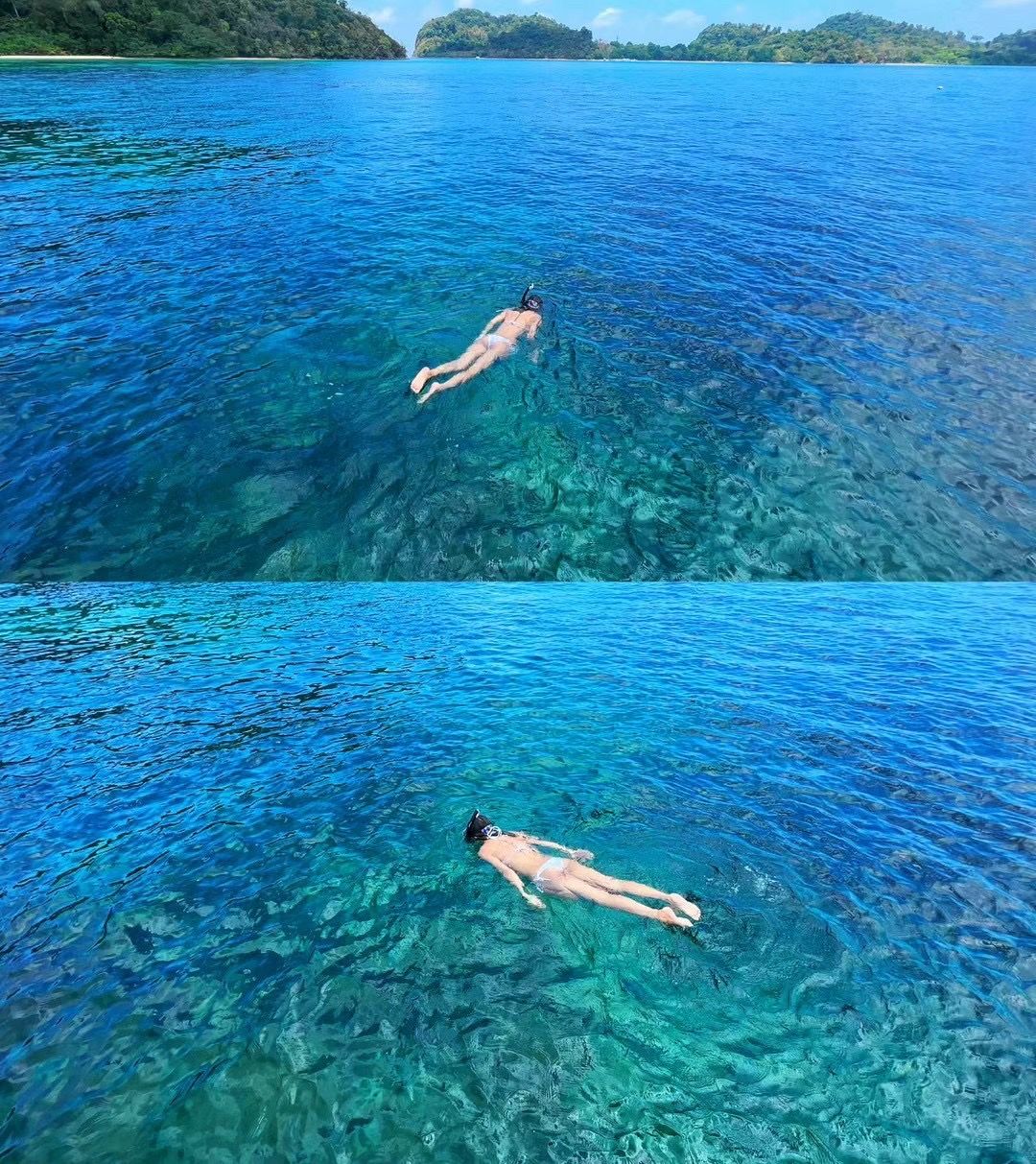 洛克岛真的是玻璃水清澈见底!鱼很多很多,种类也丰富。哈岛的水和鱼的数量比洛克岛逊色一点点,如果不会游泳,船员会拉着游泳圈带着你玩,同船有个小伙伴看见海蛇吓的尖叫,船员瞬间跳进海里去把她拉回船上了全程服务都不错