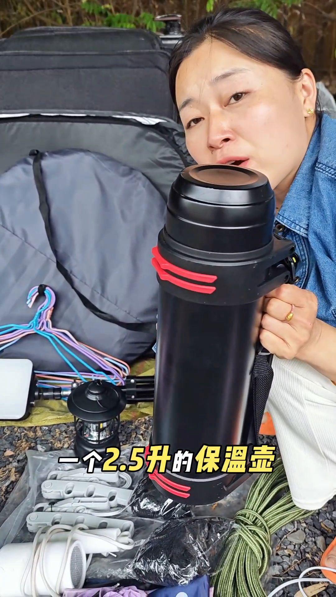 ·这个是吹风机,吹风机也是必备的。雨伞,这两个是挂钩,在酒店里面挂衣服可以用到的。这是车内用的氛围灯,充电的,可以调节亮度的灯。这个是很实用的,一个二点五升的保温壶,不锈钢的,很实用的。