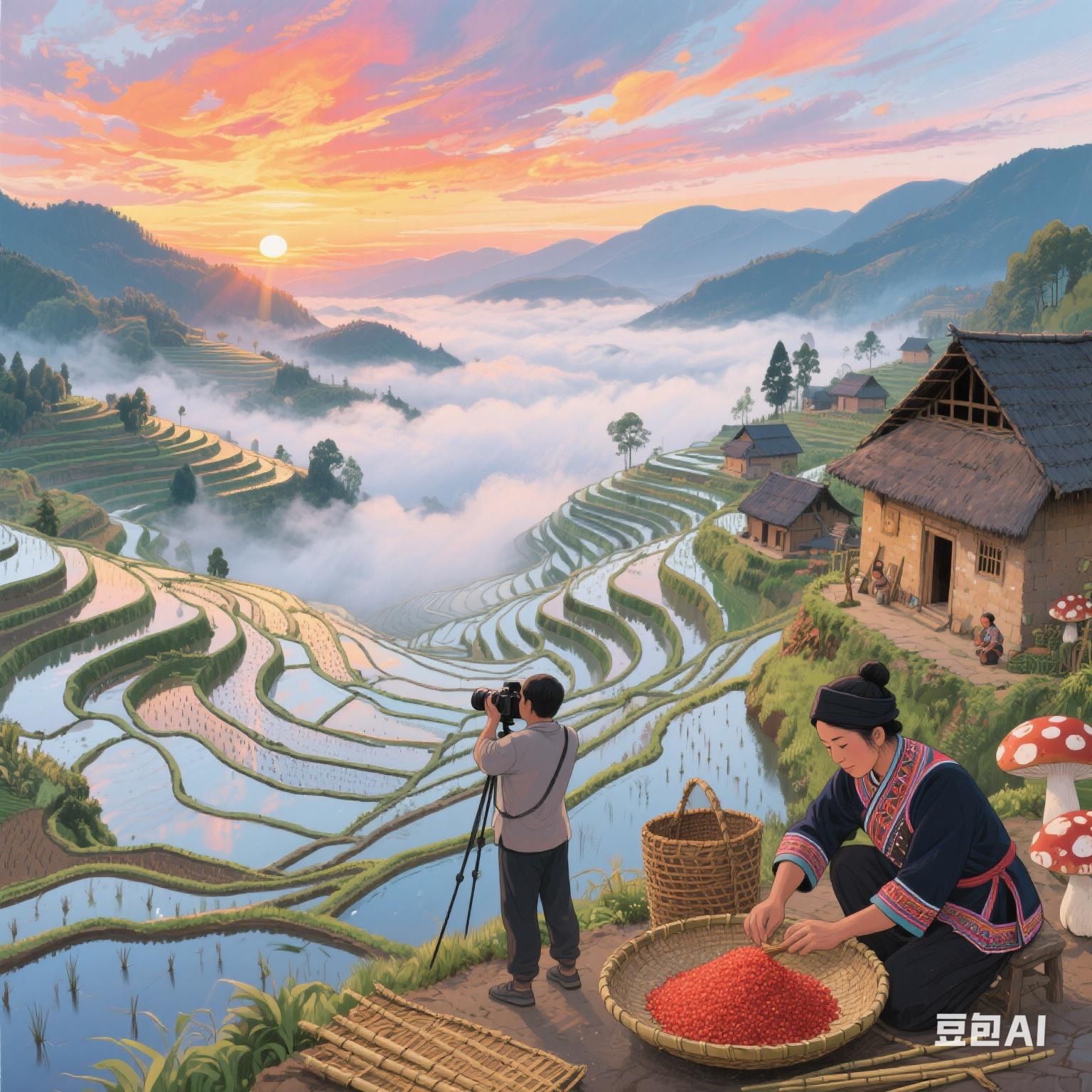 2. **季节限定奇观**:日照金山、镜面梯田、水性杨花海,每一个景观都是大自然馈赠的“时间艺术品”。