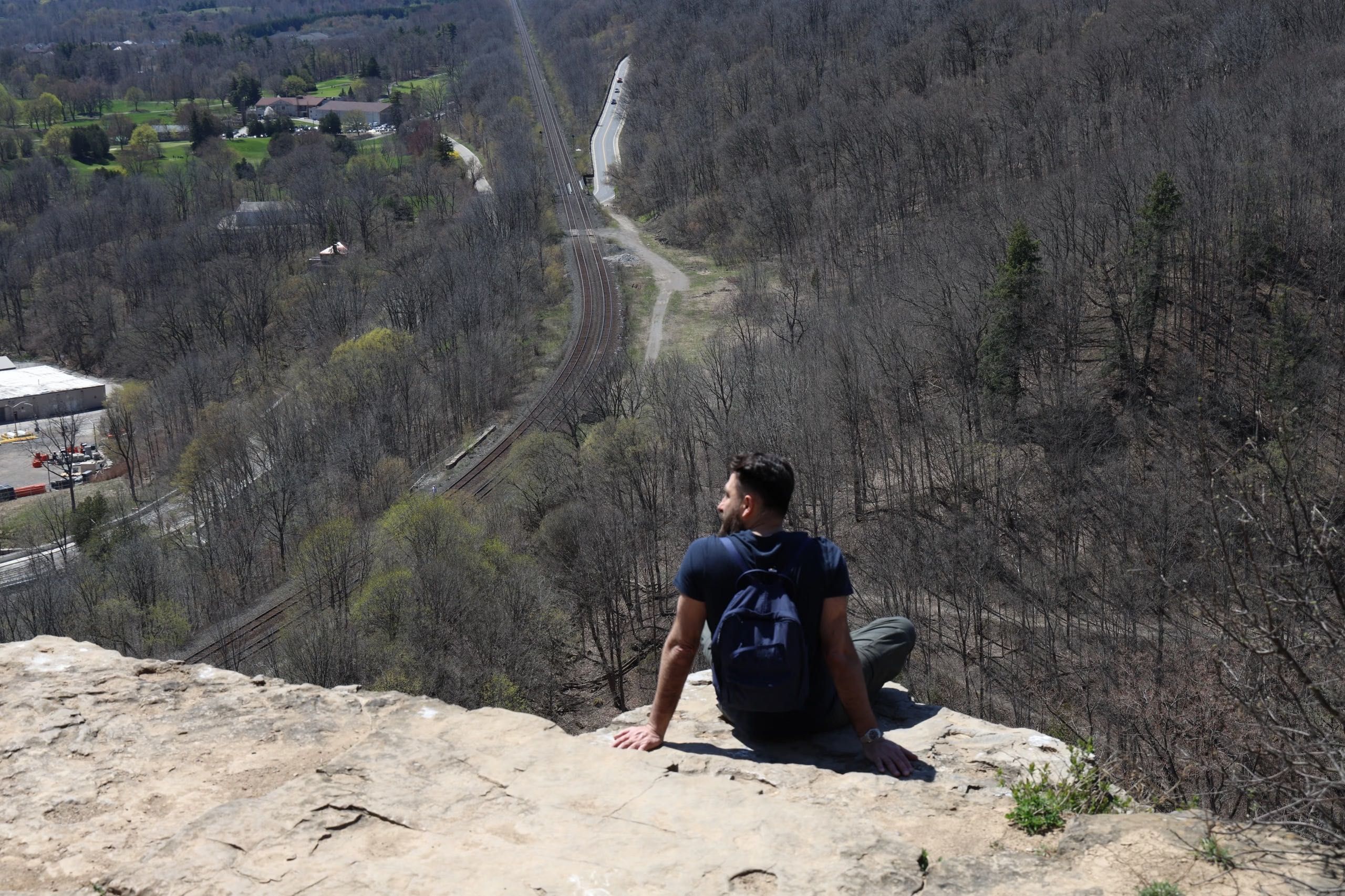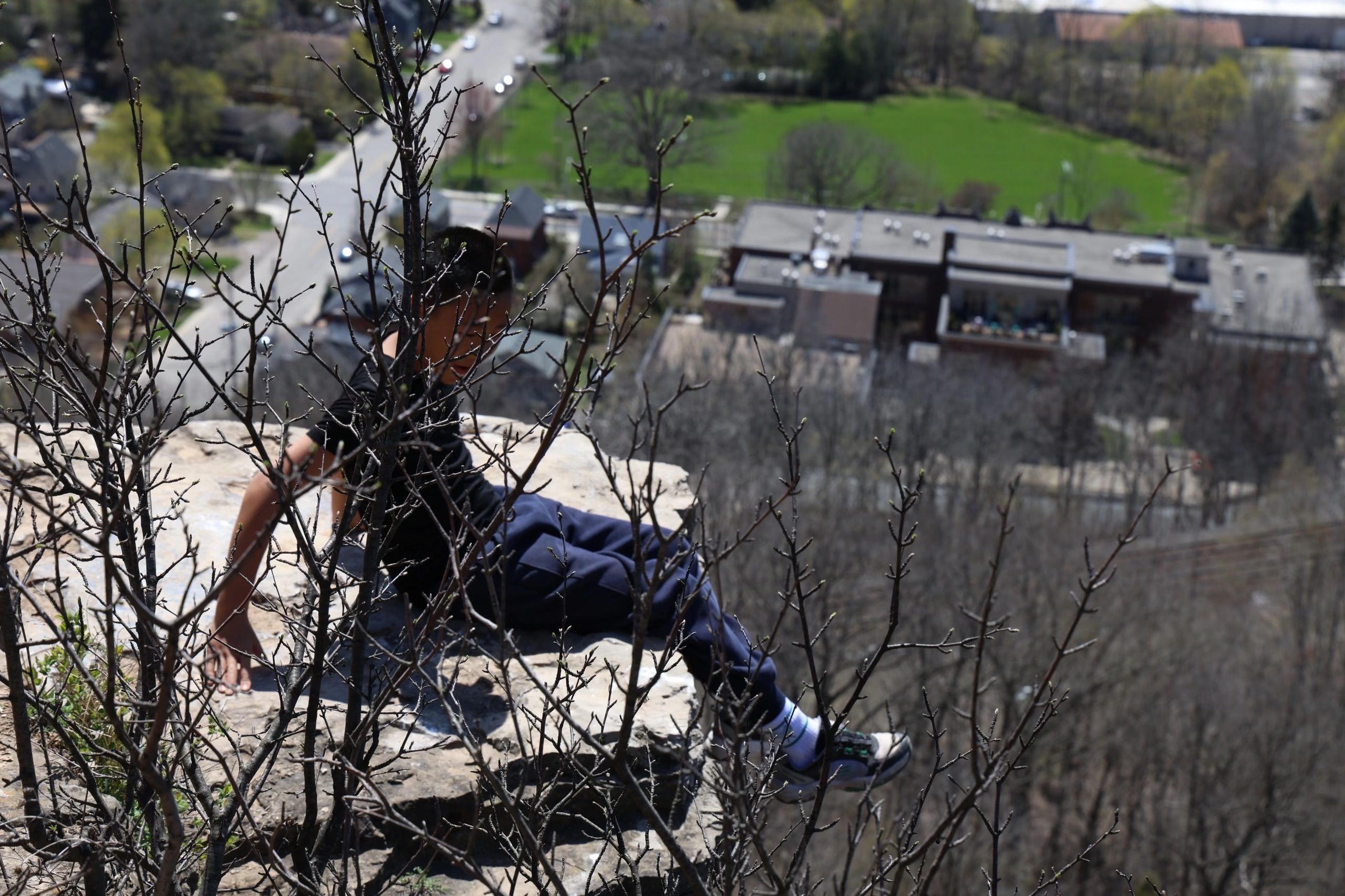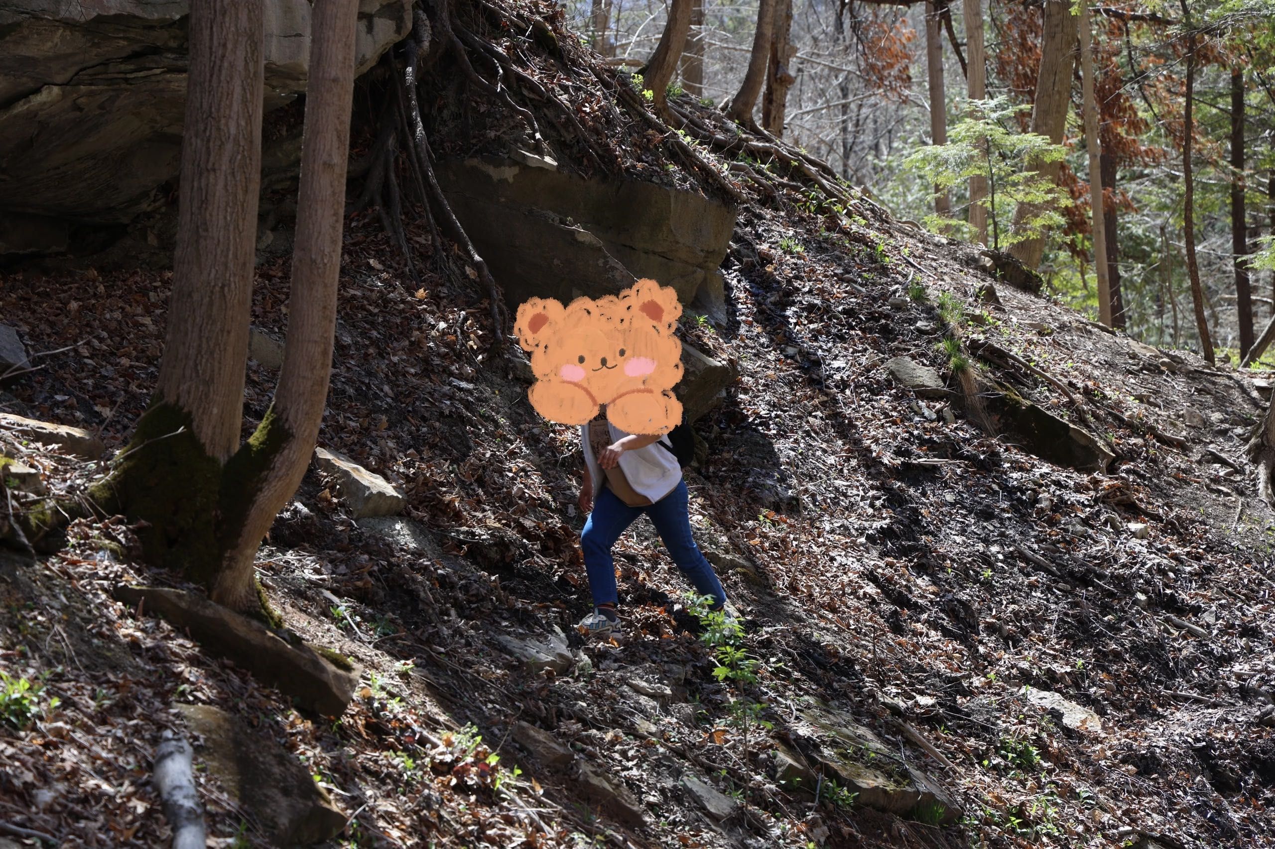 我们在几处凸石周围转了转,脚下是一片森林河谷,不远处是社区,周围也被树木包裹着。去年秋天我也来过,那时的风景很美。