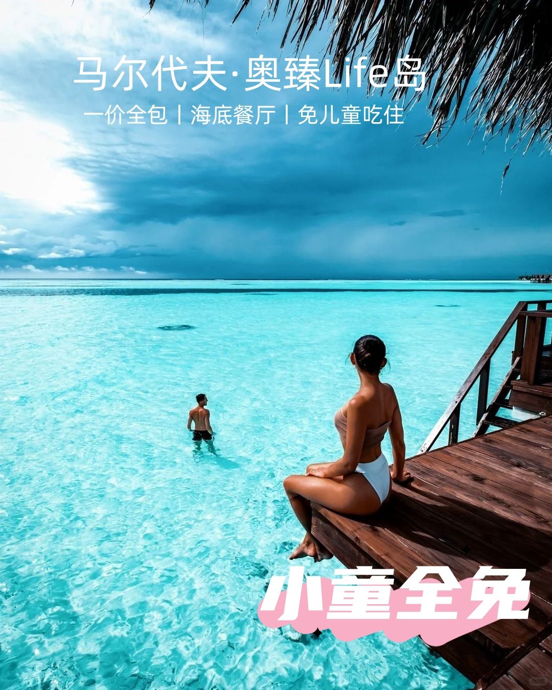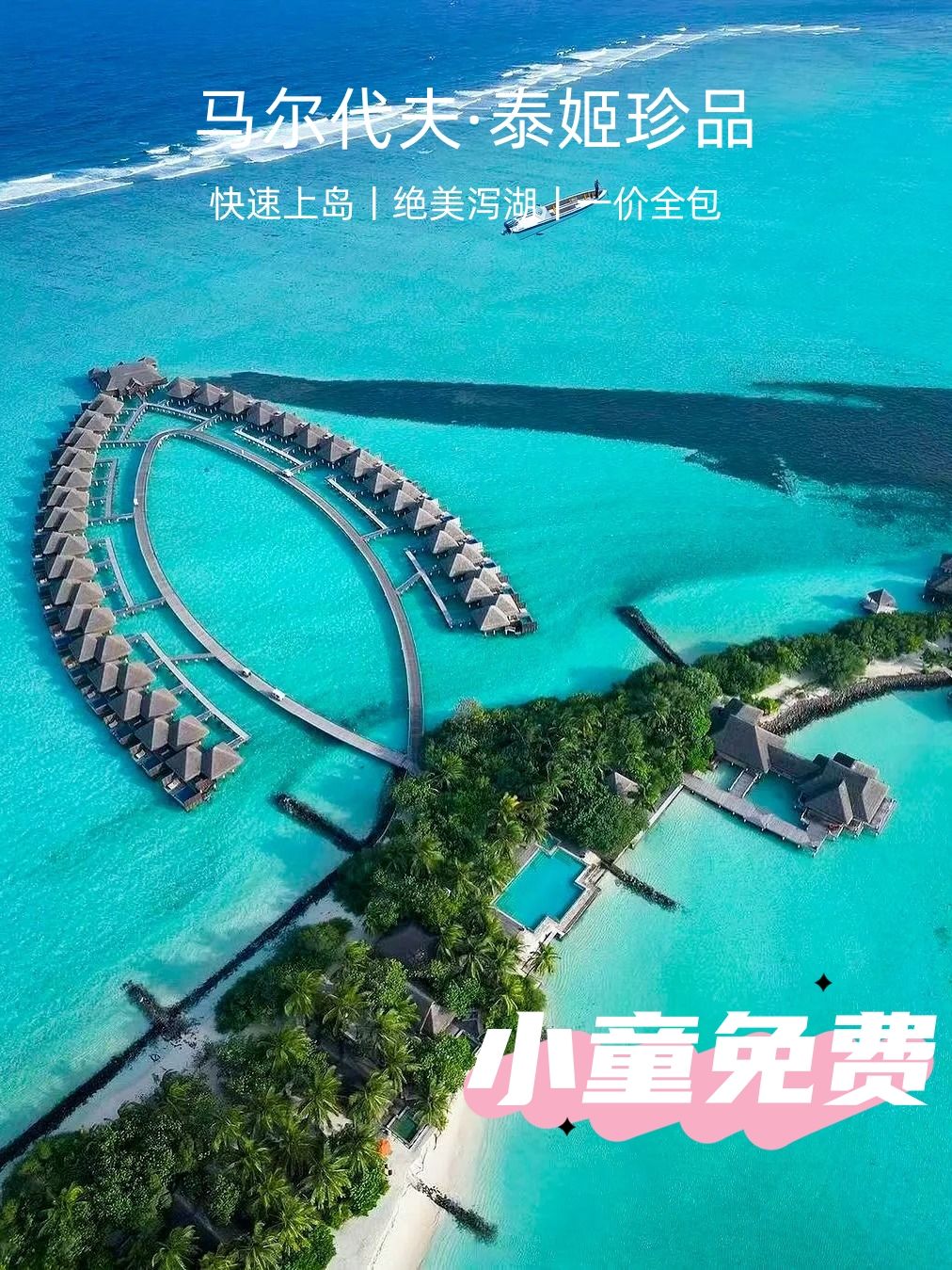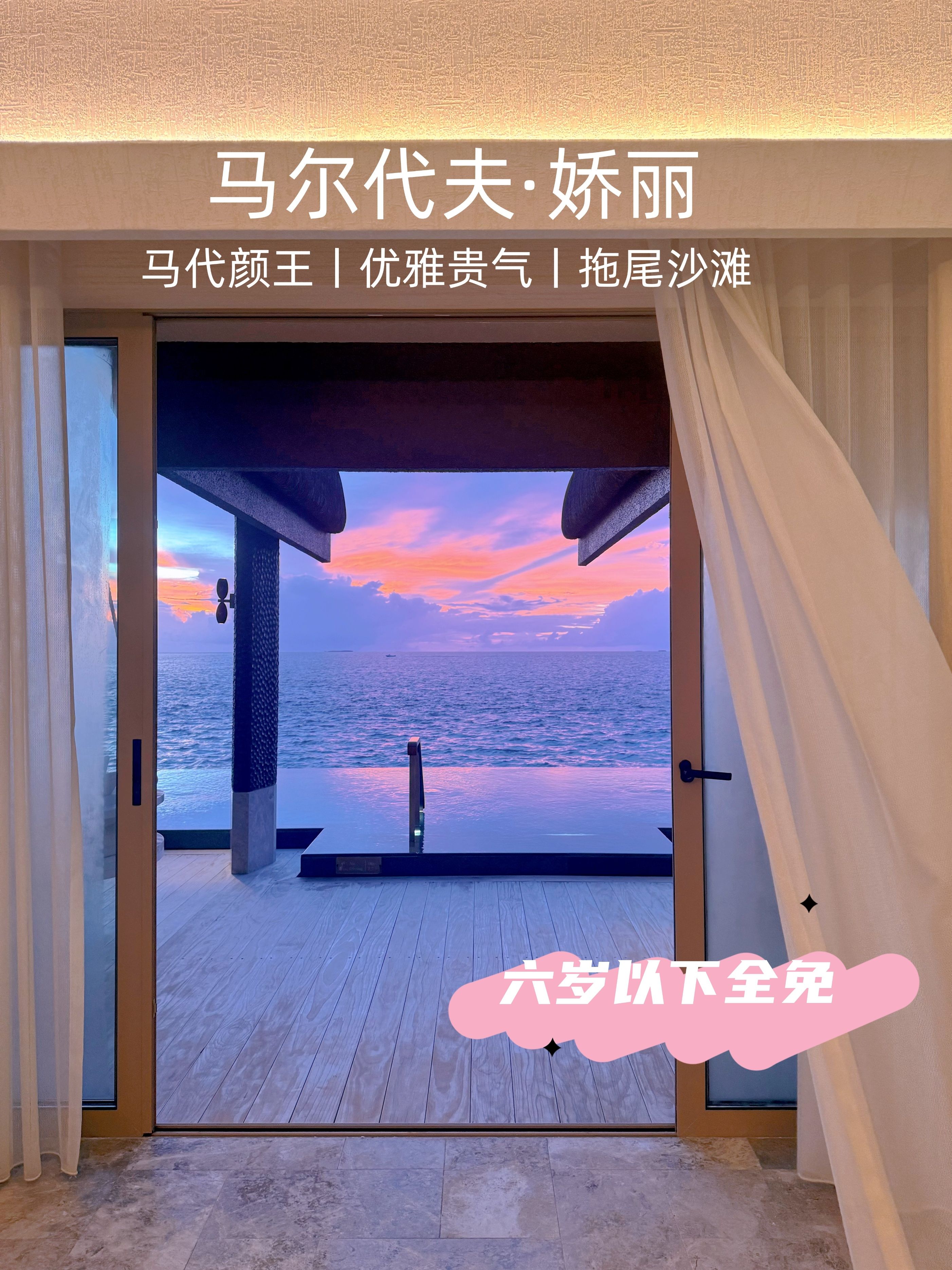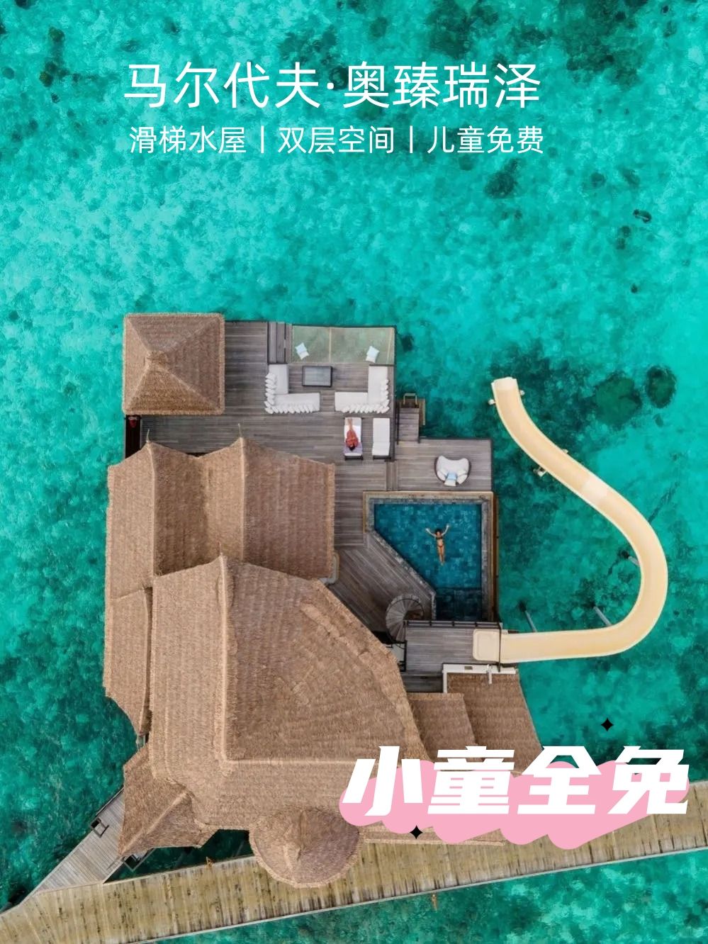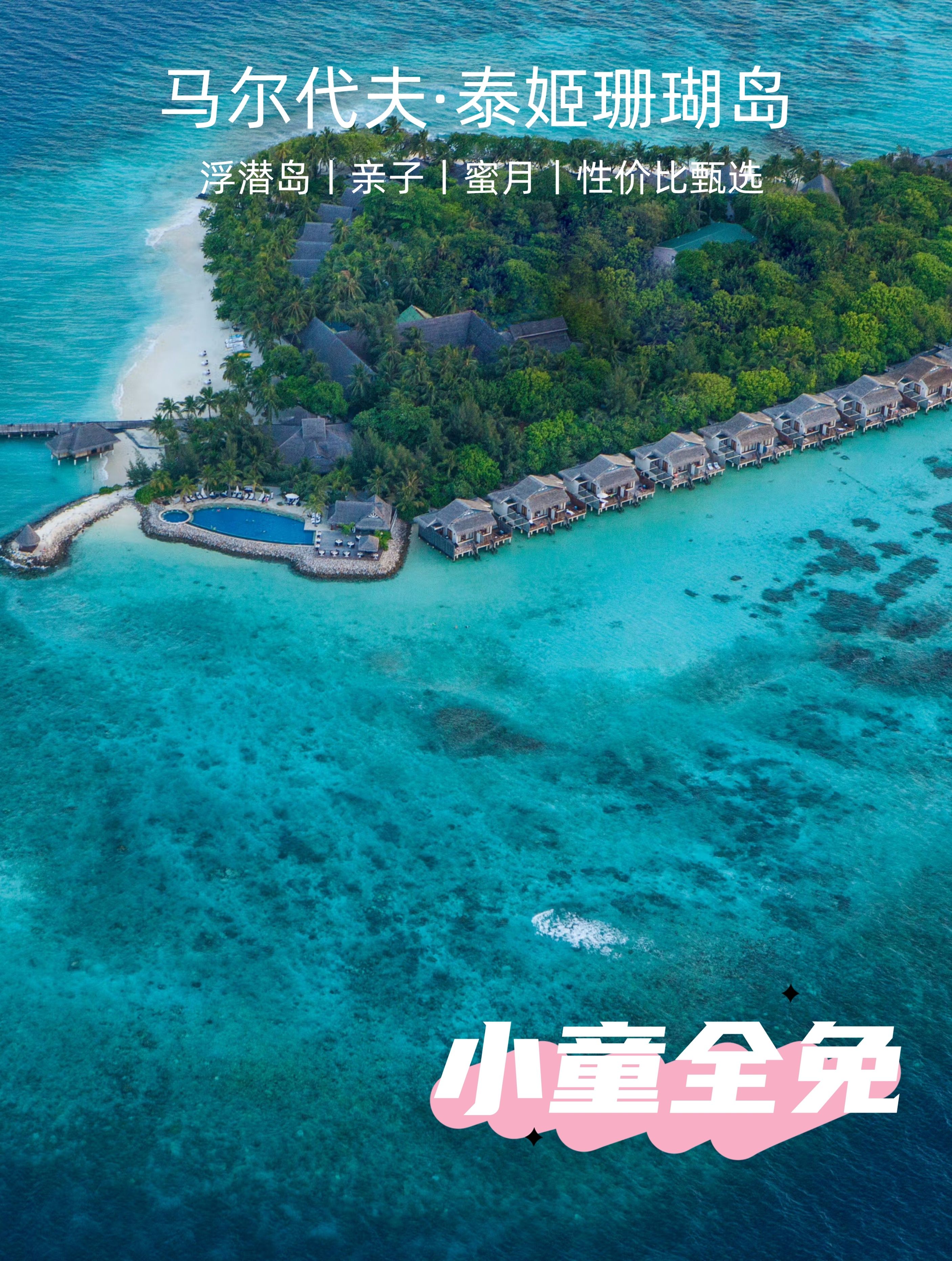 全网爆火的女神岛,优雅贵气,有浪漫拖尾沙滩和Tiffany蓝果冻海,240㎡起水屋+女性专属奢华梳妆台、有儿童俱乐部、水疗室和儿童厨房等活动