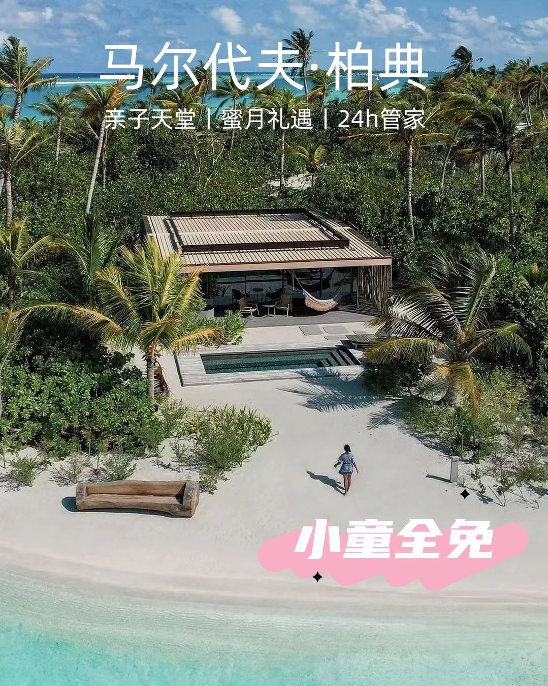 嘉佩乐集团旗下,充满了艺术气息和设计感!别墅带私人泳池和24小时管家服务,豪华快艇上岛,中文服务十分完善,吃中餐、辅导作业和儿童俱乐部都能安排上,带娃幸福感爆棚