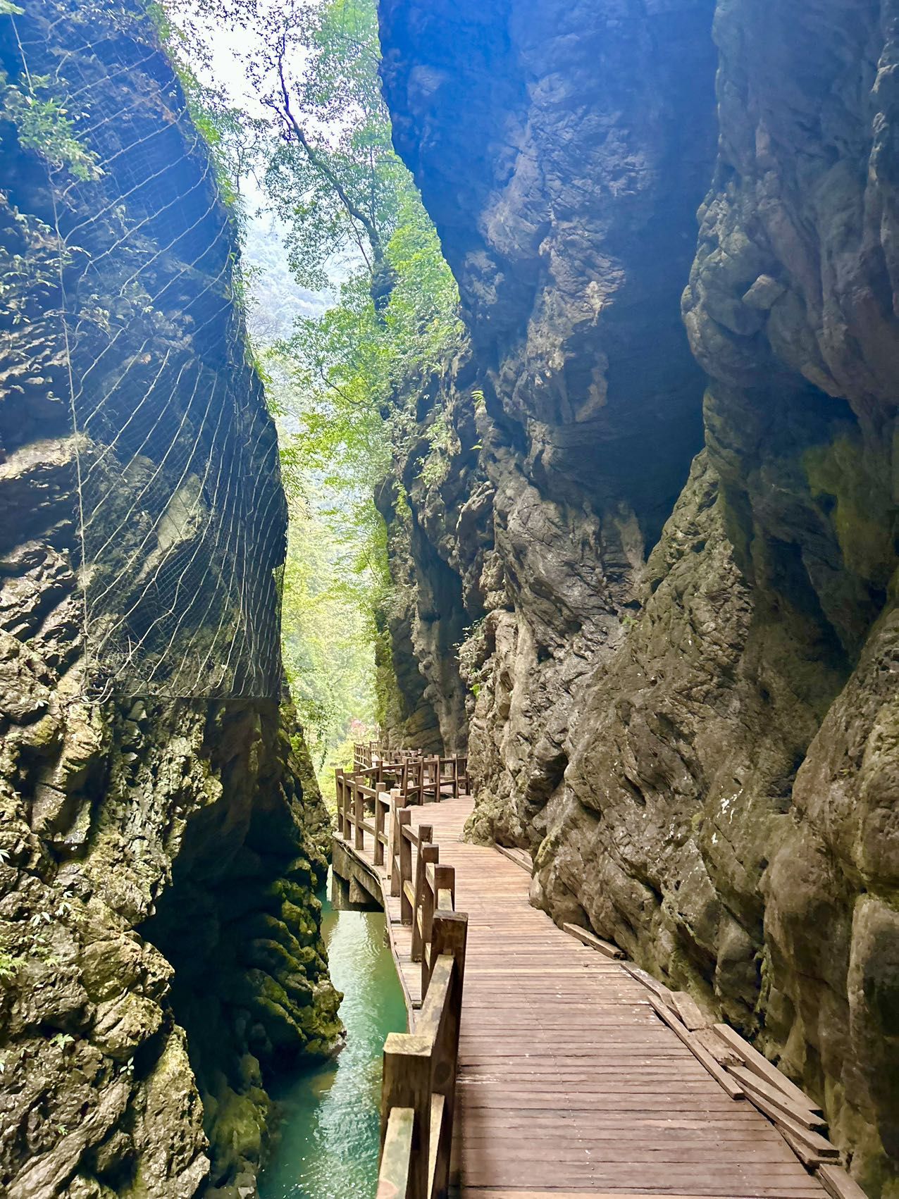 这一路上,那风景就像一幅幅流动的山水画卷。飞瀑从高处倾泻而下,水花四溅,超级壮观。奇形怪状的石头错落有致,有的像仙女,有的像大象。小桥流水潺潺,仿佛进入了一幅田园画卷。还有那峭壁栈道,走在上面既惊险又刺激,能从不同角度欣赏到美丽的风景。