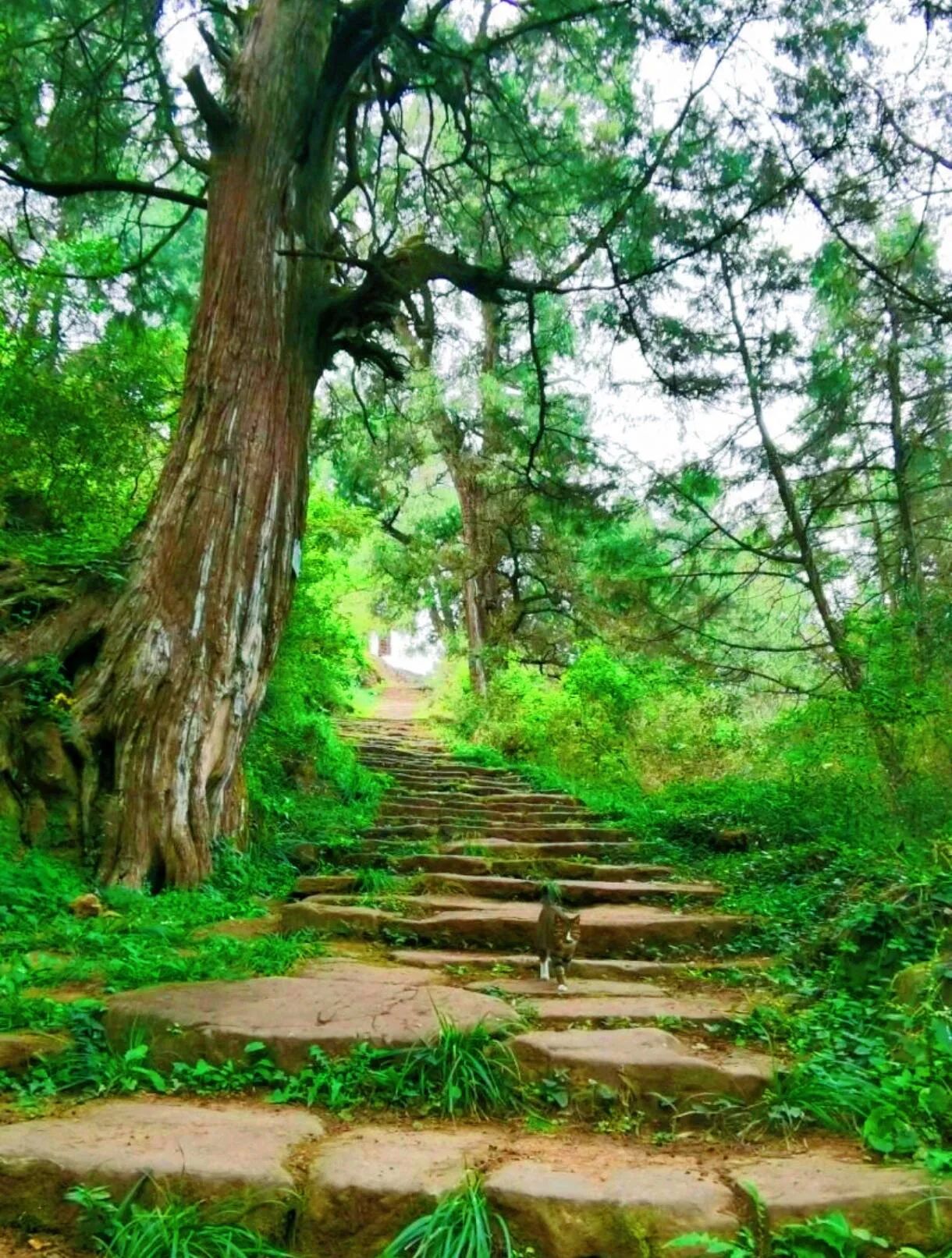 这里的打卡亮点太多啦!拦马墙遗址一定要看,宋代石墙上还留着千年马蹄印,伸手触摸仿佛能和历史对话。300多棵古柏遮天蔽日,阳光透过枝叶洒下,光影美到窒息,随手就能拍出森系大片。原生态石板路布满苔痕,蜿蜒在林间,走在上面就像穿越了时空隧道。而且这里人少景美,还能邂逅可爱的松鼠、山雀,简直像是承包了整片森林!