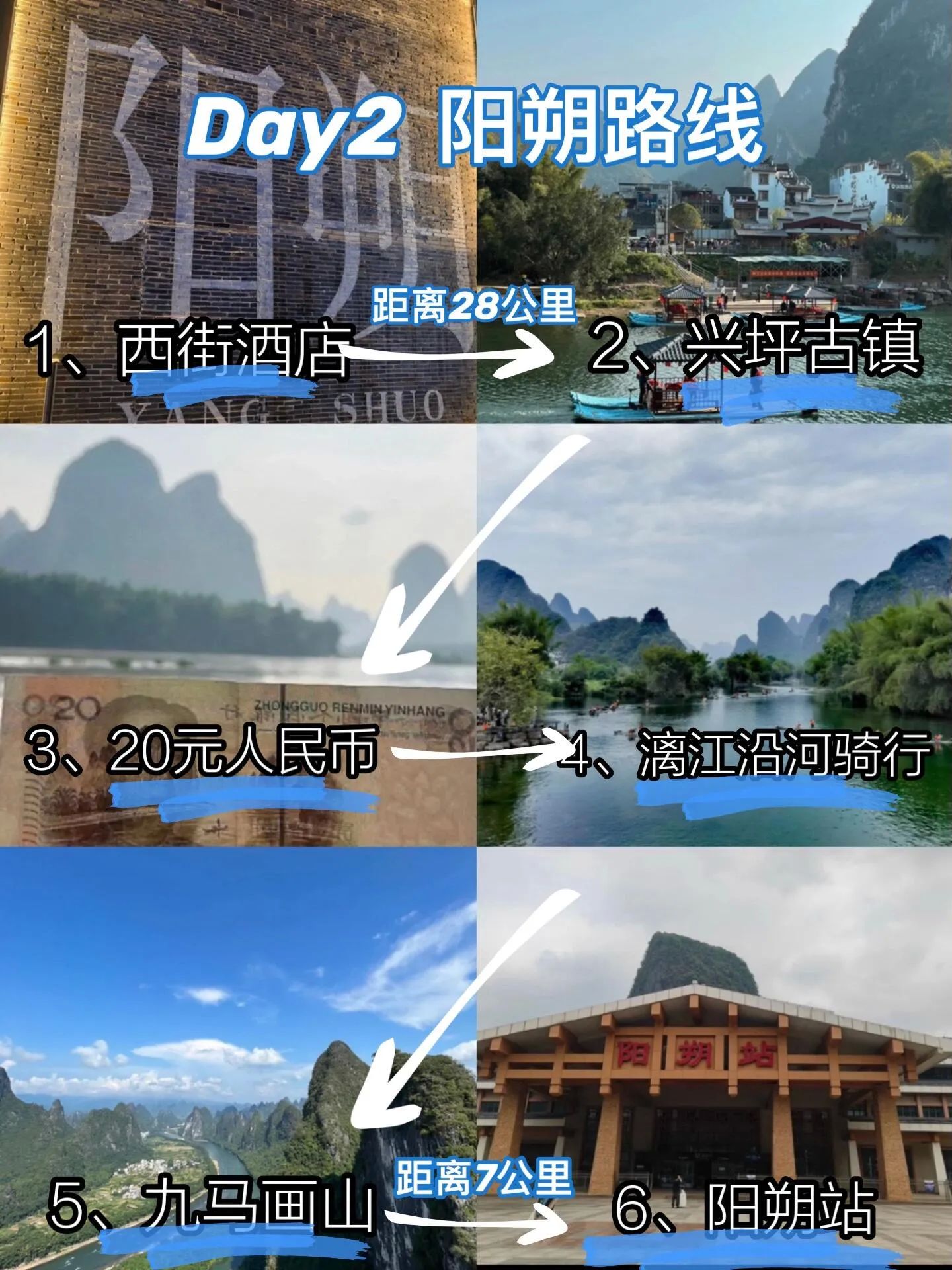 - 阳朔站:打车约7公里,准备返程
