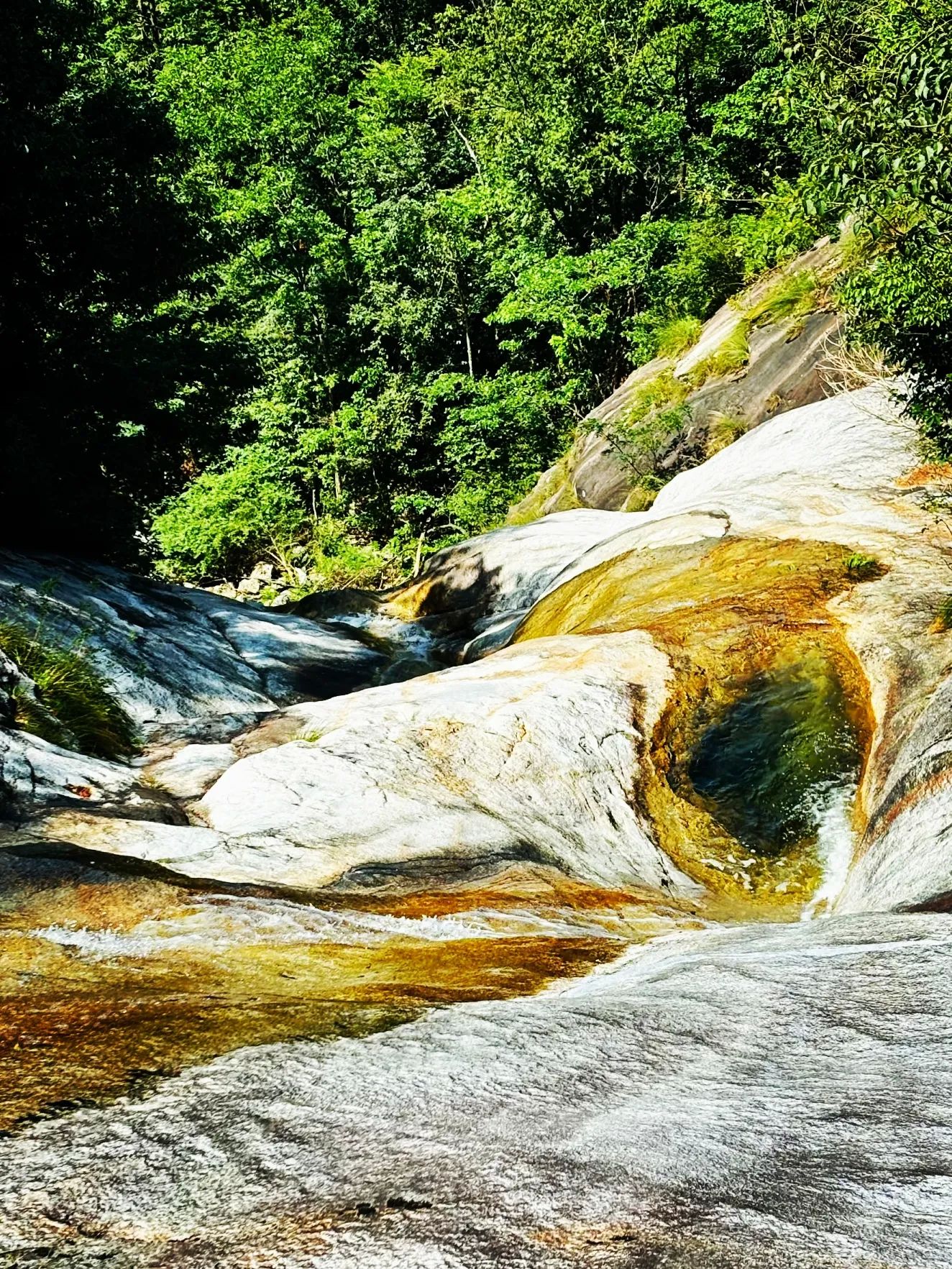 3. 彩虹瀑布:亚洲第一彩色瀑布!阳光照射下,可见七色彩虹,猴河峡谷徒步超有趣,沿路寻找"华东第一天生桥",记得穿防滑鞋,景区内有高空吊桥和攀岩项目,冒险爱好者必试。