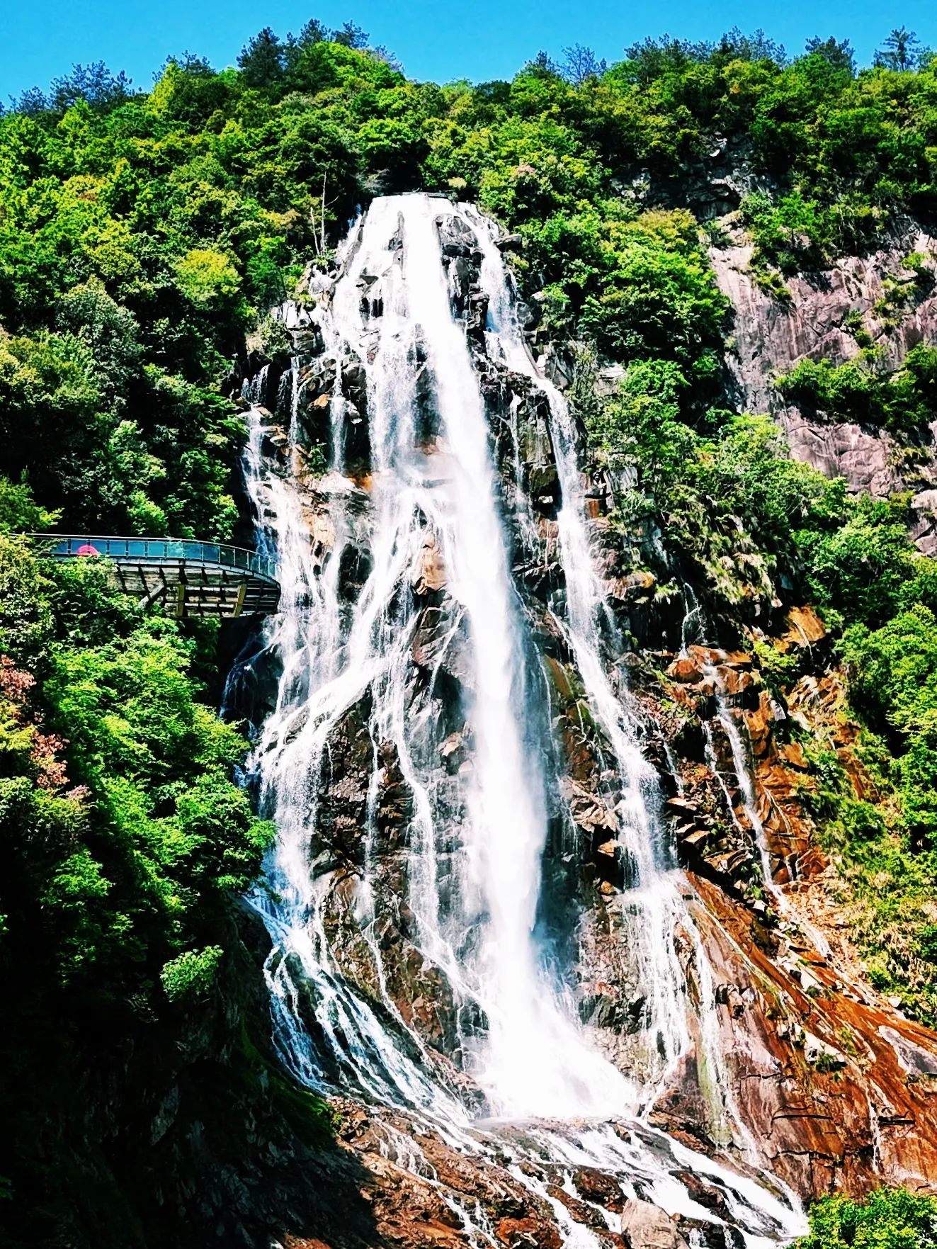 2. 天峡风景区:华东最大瀑布群!千米通天瀑飞流直下,穿行在原始森林木栈道,负氧离子爆表,春天满山杜鹃,秋天红叶似火,九连环瀑布群,层层叠叠超震撼,网红高空滑道、彩虹滑道超解压,亲子游强推!