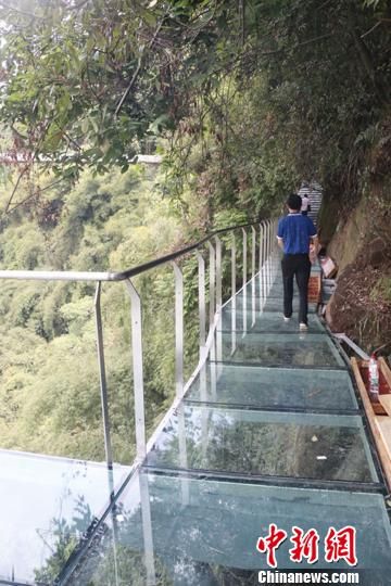 据了解,玻璃栈道的设计宽度为1.5米,长度达260米,为保证施工质量,景区聘请了四川省建筑科学研究院对项目实施全程进行质量管控。
