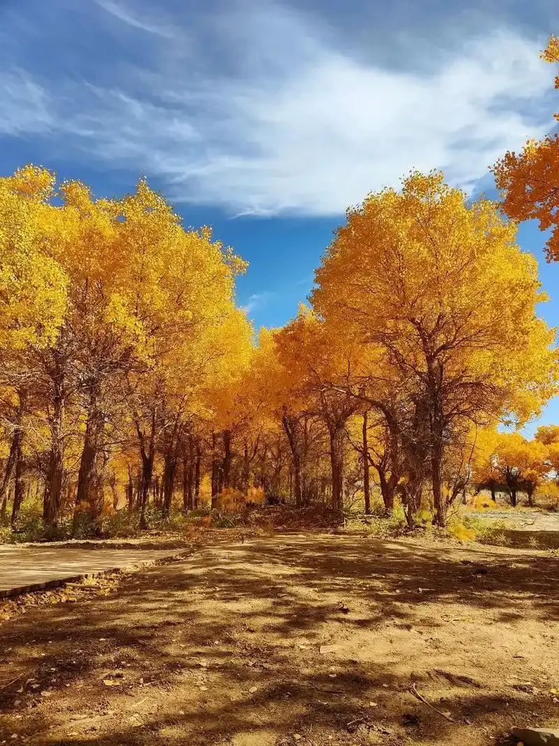 1.额济纳胡杨林:全球仅存三大胡杨林之一,10月金黄一片,倒影如画(最佳观赏期仅20天)。