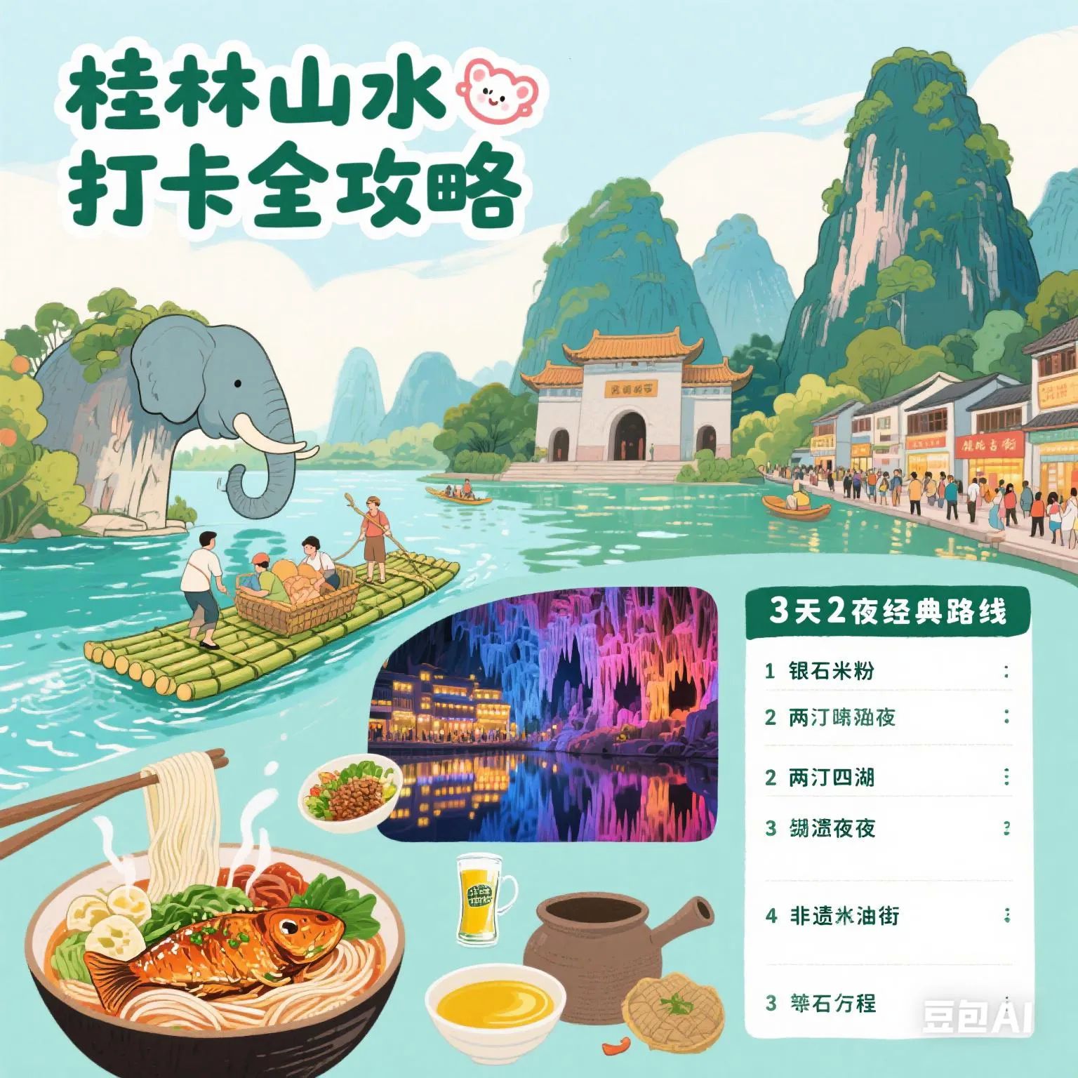 “桂林山水甲天下,玉碧罗青意可参”,这片被山水浸润的秘境,是无数人心中的“诗与远方”。今天,带你解锁桂林最值得打卡的绝美风光,从千年古迹到山水奇观,从烟火老街到奇幻溶洞,一键收藏这份攻略,分分钟拍出电影感大片!