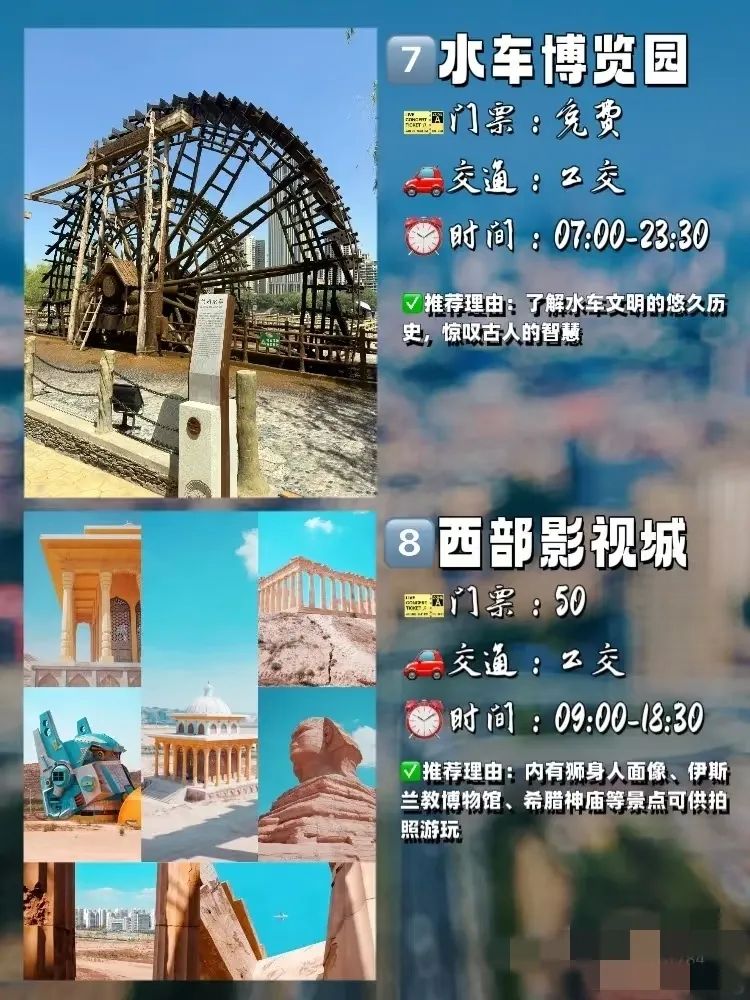 水车博览园是展示兰州水车文化的生动窗口。在这里,你能近距离看到传统水车的运作,了解古代劳动人民利用水利的智慧,感受历史与文化的交融。