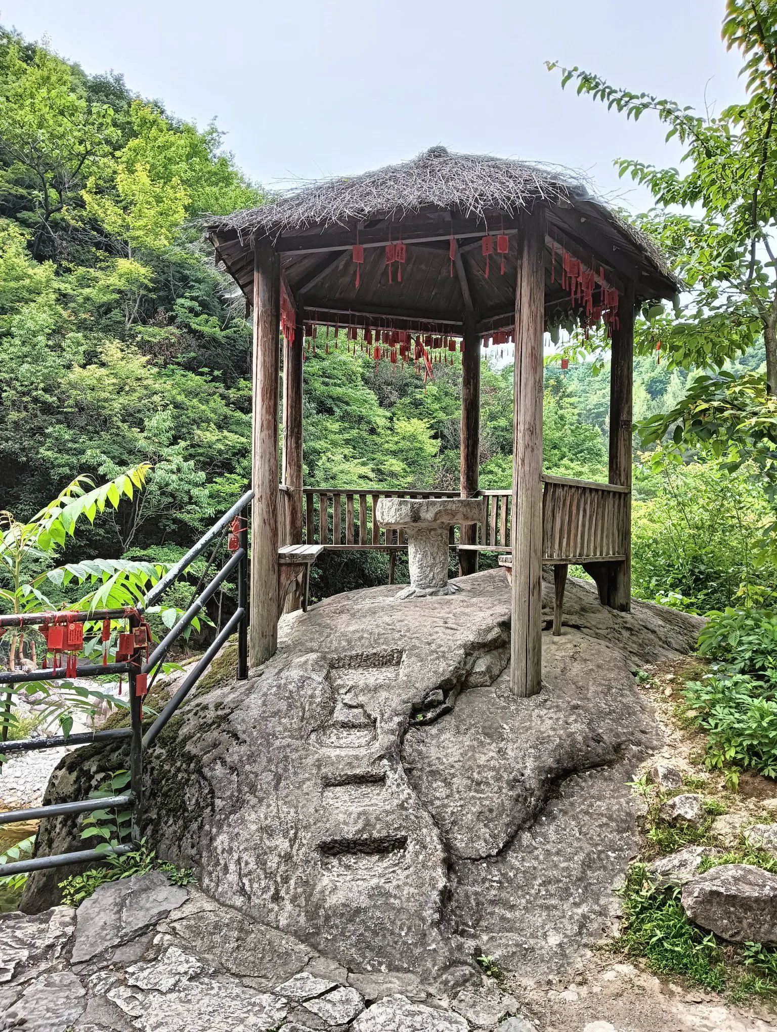 图14、福顺石旁的一座小憩亭,上边挂满了祈福许愿牌;