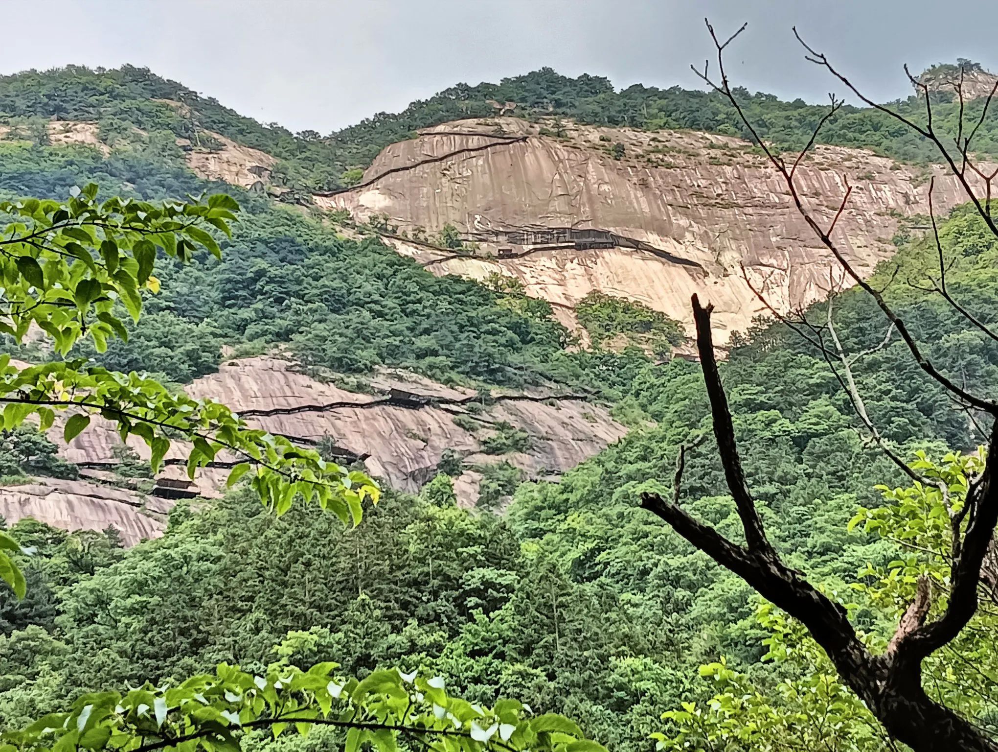图2、雄伟高大的白马峰及龙型栈道;