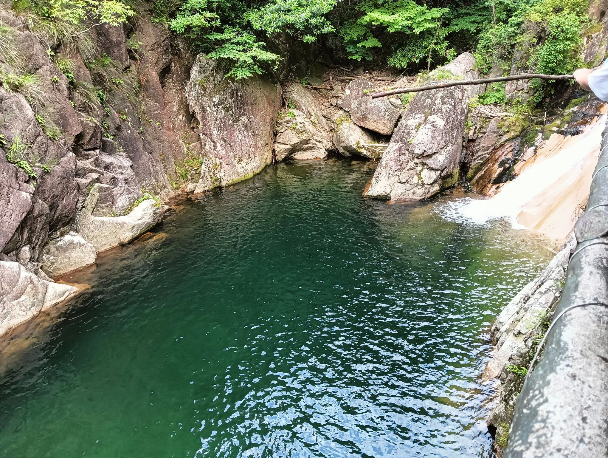 图6、上潭流下潭,一潭又一潭,沿途小瀑布和潭水很多,而且潭水碧绿青翠。