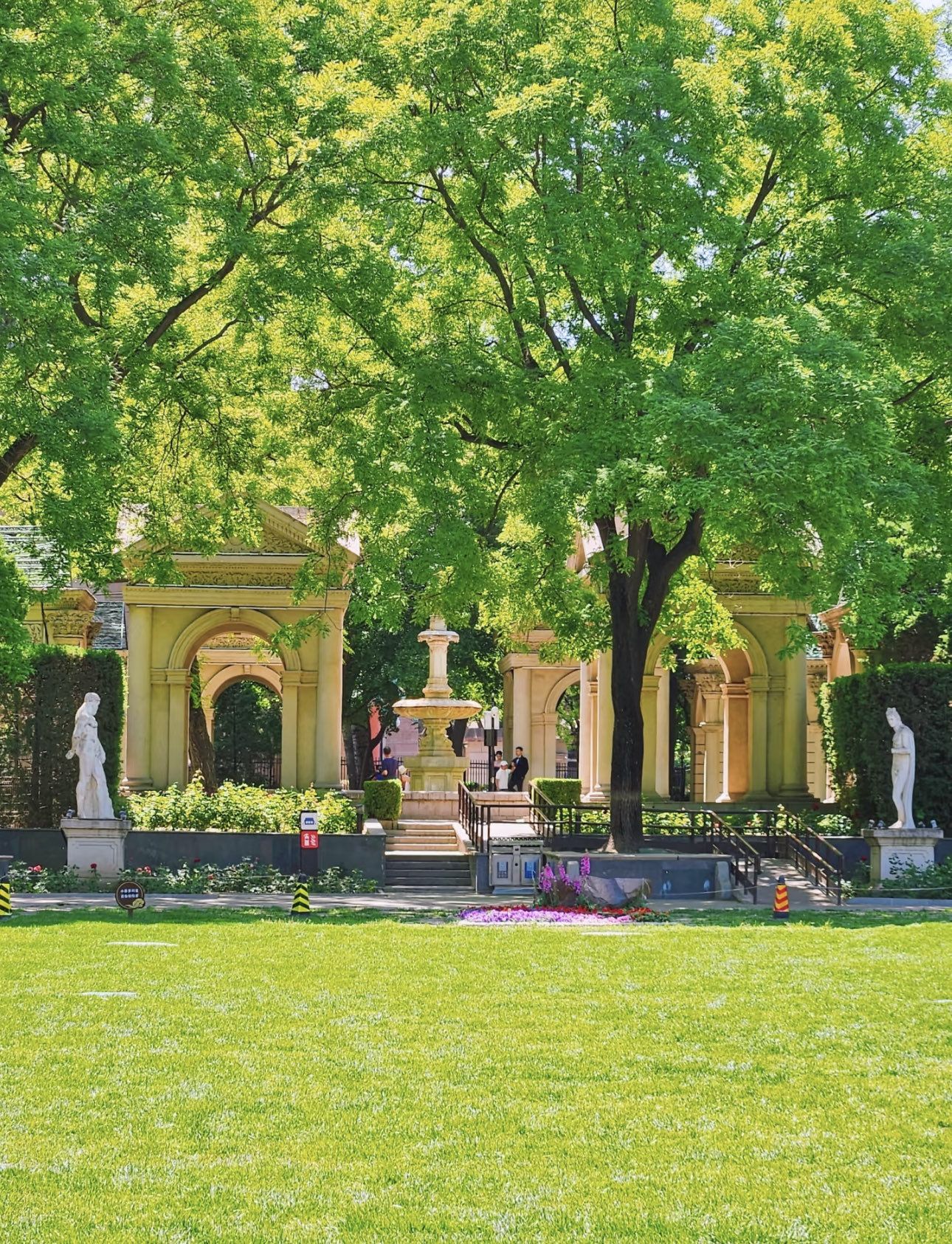 人定湖公园在西城区安德路六铺炕15号,南半部是充满欧洲规则式庭院韵味的园林环境,白色的廊柱、精致的雕塑、清澈的水景,随手一拍都是满满的欧式风情,很出片。