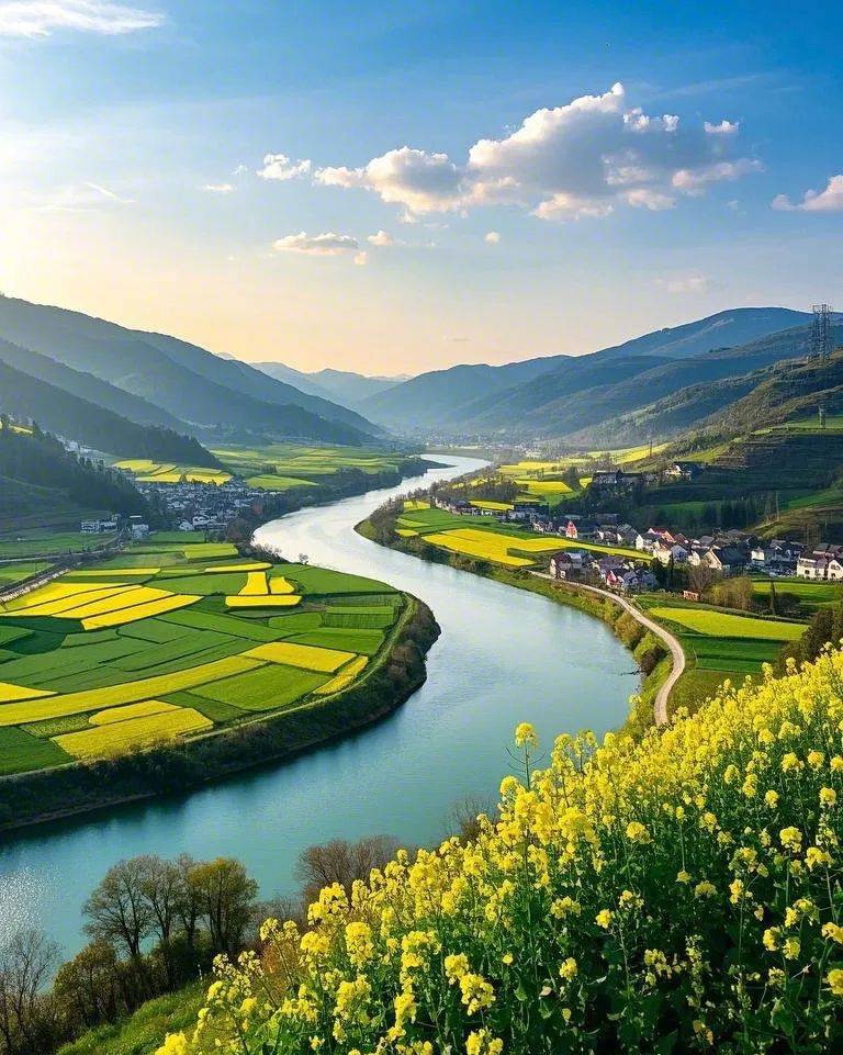 **特色**:凯江蜿蜒如龙,春季河岸油菜花与绿野交织,登高俯瞰全景震撼。