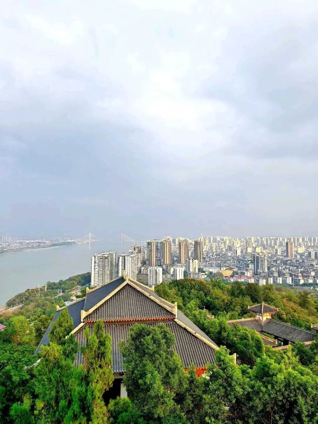 登楼远眺,将鄂州、黄州景观尽收眼底,万里长江,百舸争流,让人感受到天宽地阔、气势磅礴。