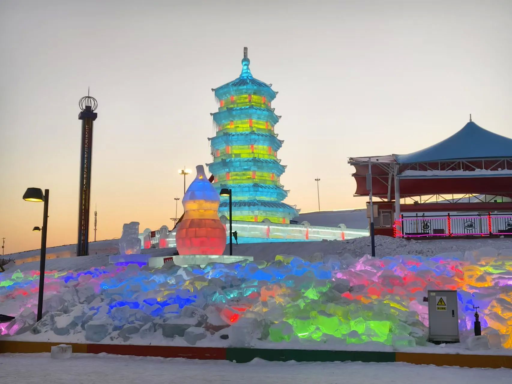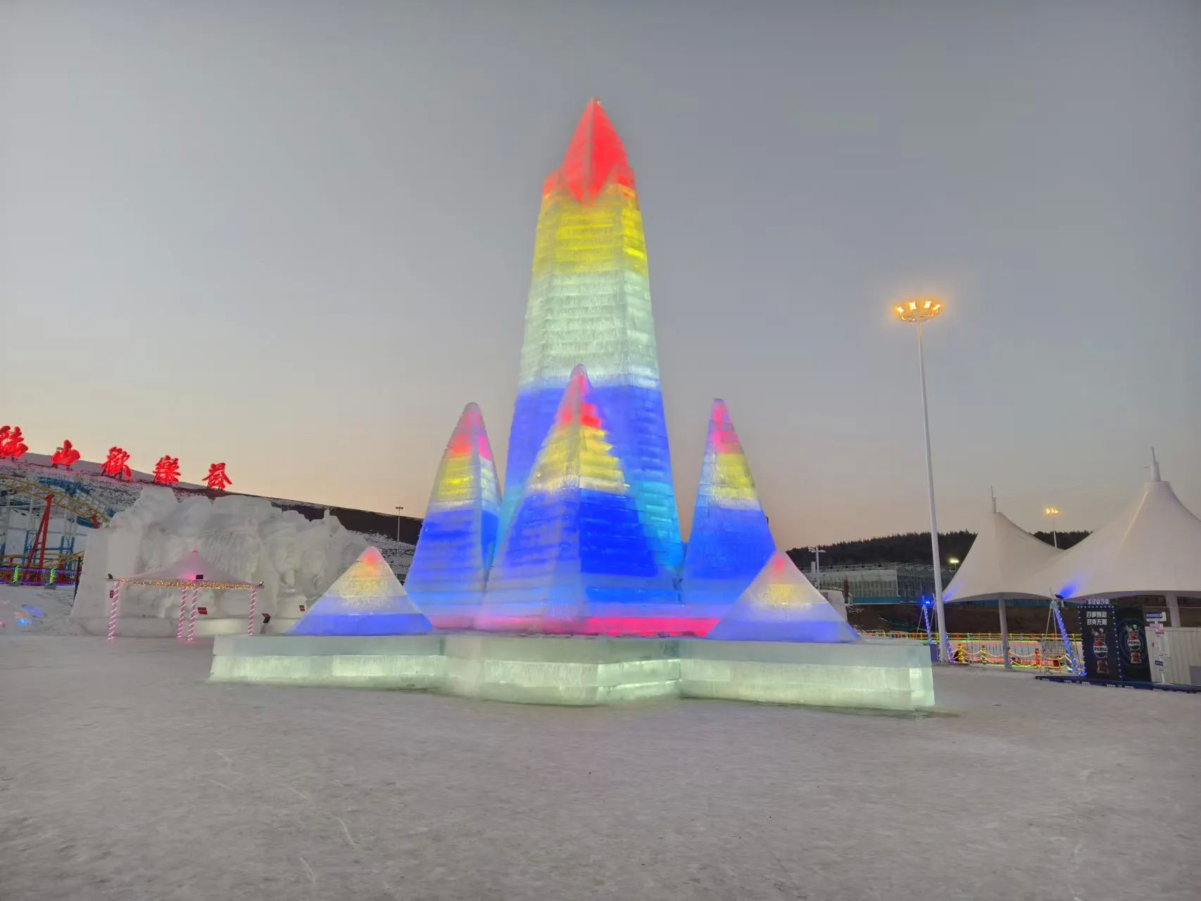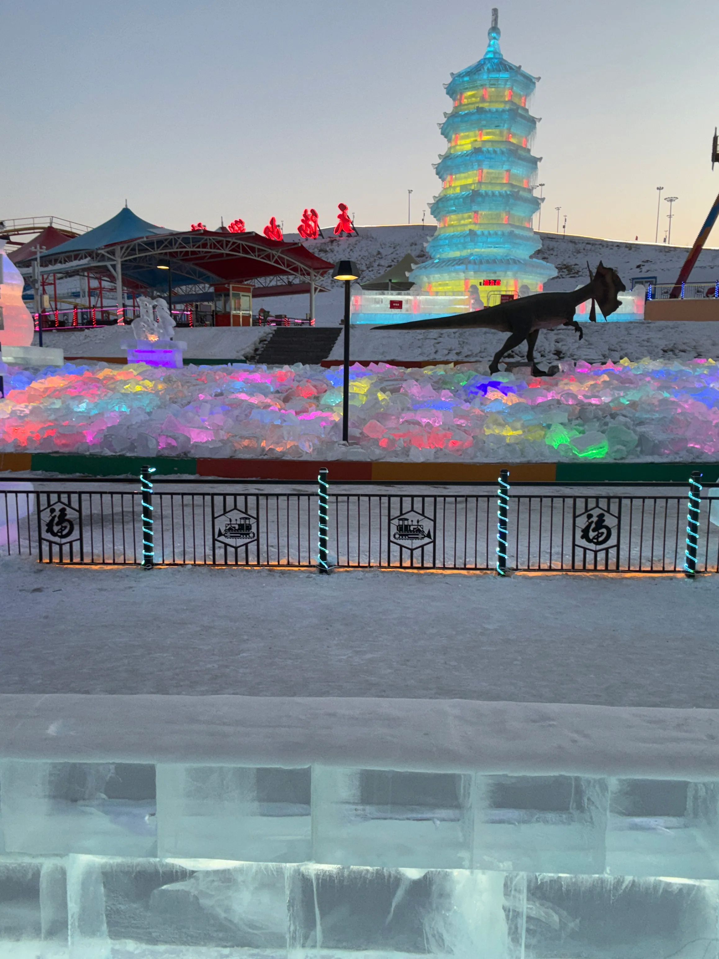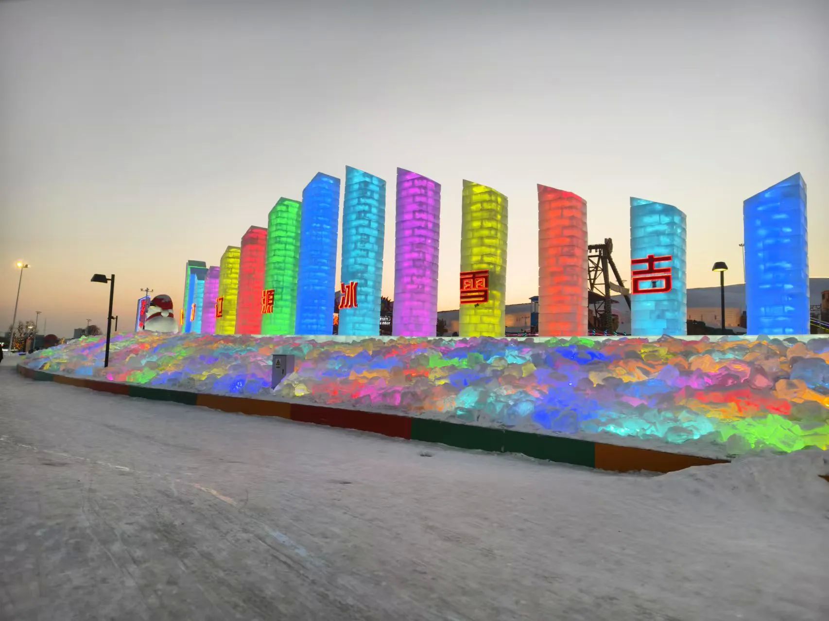 • 冬季项目:近4万平方米的特色商街和可容纳2000余人的演艺广场增设冬季游玩项目,打造冰雕雪塑和金蛇狂舞闹花灯等实景加体验的互动游乐活动。