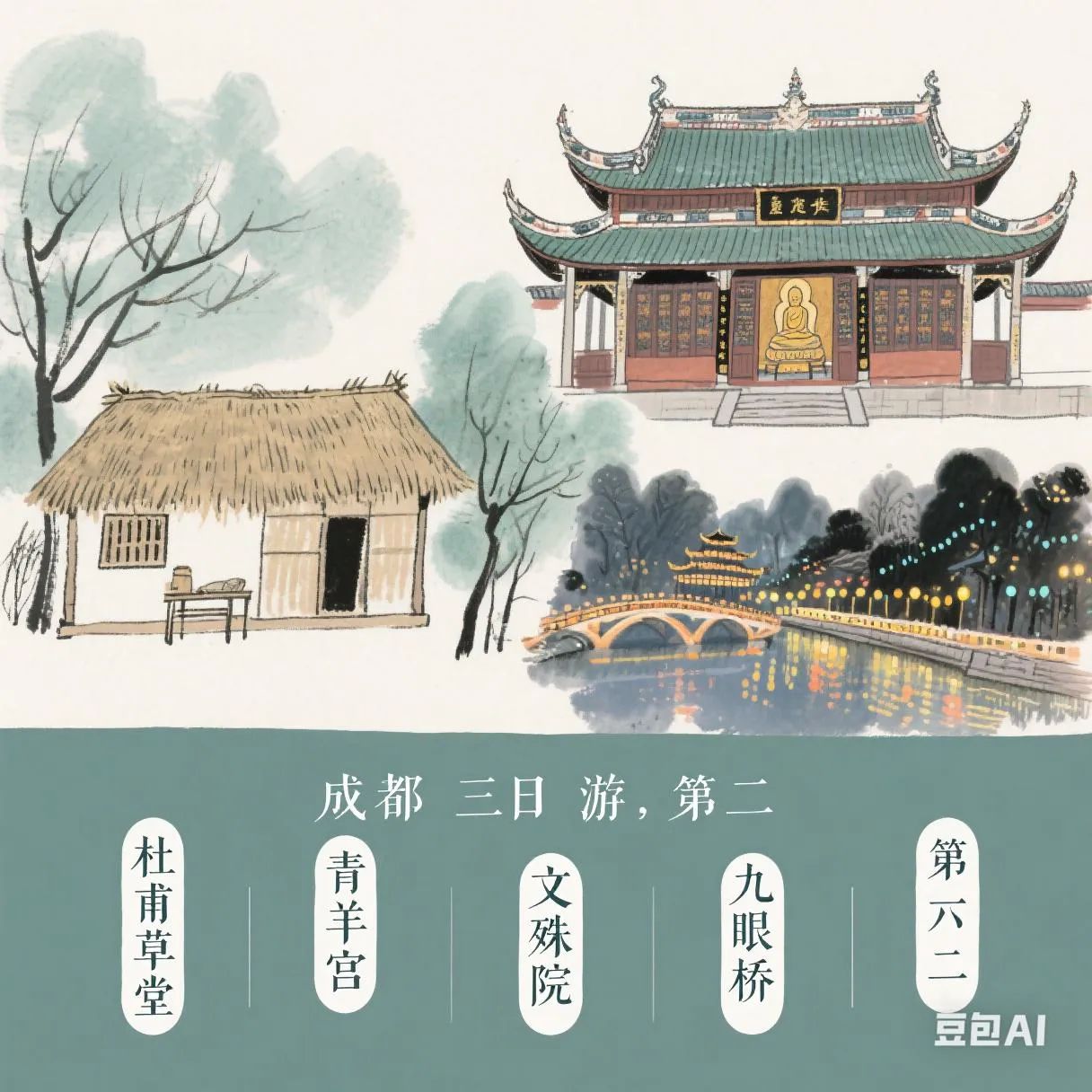 第二天:杜甫草堂 - 青羊宫 - 文殊院 - 九眼桥