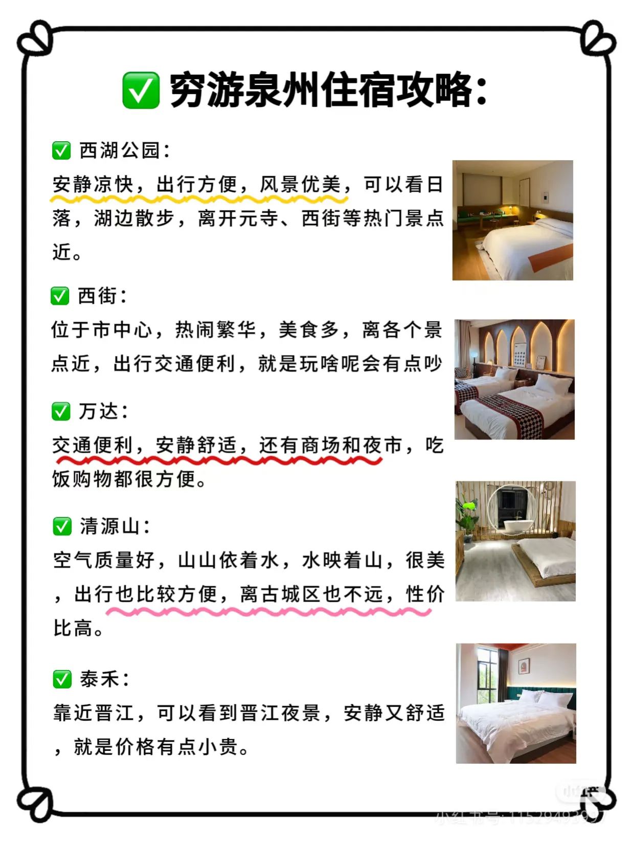 西街周边:这是泉州充满历史文化气息的区域。中山路附近:位于市区中心,交通极为便利,方便前往各个景点,而且周边购物、餐饮等配套设施完备。