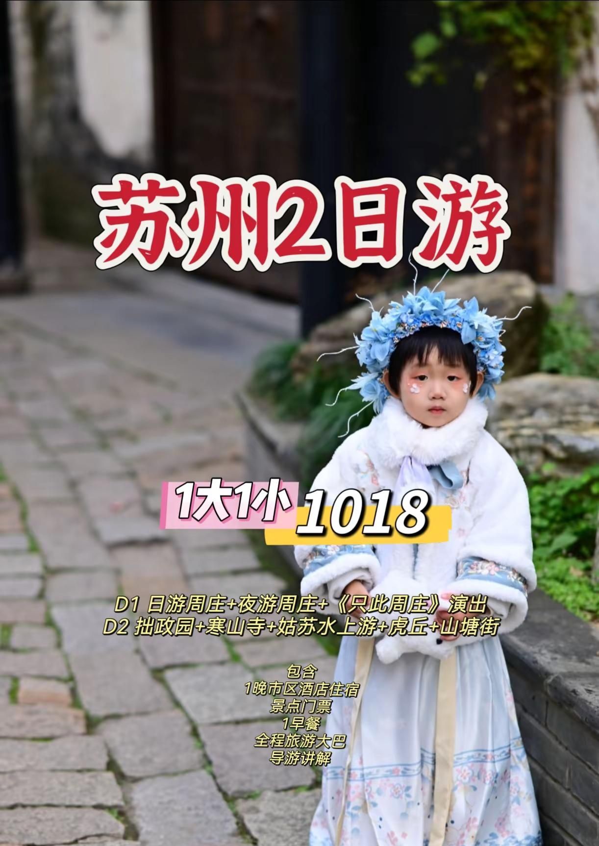 寻梦江南,情醉苏州两日行。在粉墙黛瓦、小桥流水中,藏着最纯正的江南韵味。如果你也向往那温婉的水乡风光,就跟随我的脚步,来一场为期两天的苏州深度游吧! 第一天:邂逅周庄,梦里水乡 中午12点左右,抵达苏州站,热情的导游早已等候,带你开启这场美妙的旅程。稍作休息,便前往“中国第一水乡”——周庄。在这里,时光仿佛放慢了脚步。 漫步在古街古巷,脚下是斑驳的石板路,身旁是明清风格的建筑,雕梁画栋间诉说着岁月的故事。河道上,小船悠悠划过,船桨激起的涟漪,晕染出一幅灵动的水墨画。 夜幕降临,华灯初上,周庄又换上了另一副迷人的面孔。灯火阑珊处,古桥、楼阁倒映在水中,如梦如幻。此时,去看一场震撼人心的《只此周庄》演出,在光影交错中,感受周庄千年的历史文化与民俗风情,沉浸式领略水乡独特的魅力。 第二天:园林禅意,虎丘遗风 第二天从一顿温馨的早餐开始,随后前往拙政园。这座江南古典园林的代表之作,以水为中心,亭台楼阁错落有致,假山池沼相得益彰。一步一景,处处皆诗画,仿佛走进了古人的诗意生活。 接着前往寒山寺,聆听那悠悠的钟声,感受古寺的宁静与庄严。“姑苏城外寒山寺,夜半钟声到客船”,千年前张继笔下的意境,在此刻得以重现。 乘坐姑苏水上游游船,从另一个角度欣赏苏州的美。沿岸的粉墙黛瓦、枕河人家一一掠过,微风拂面,惬意十足。 下午来到虎丘,这里有“吴中第一名胜”的美誉。千年虎丘塔倾斜却不倒,见证了无数的历史变迁。剑池神秘莫测,传说中隐藏着吴王阖闾的宝藏,吸引着无数游客前来探寻。 最后,来到山塘街。这里是老苏州的缩影,古戏台上传来婉转的评弹声,街边的小吃琳琅满目。漫步其间,感受苏州的烟火气息,为这次美好的旅程画上圆满的句号。 这次苏州两日游,包含一晚市区舒适酒店住宿、一顿早餐,行程内景区门票全含,还有贴心的车接车送和专业导游全程讲解。全程纯玩无购物,让你尽情享受苏州的美景与文化。快来苏州赴一场江南之约吧!点击左下角团购链接提前囤起来吧,确定了出行日期提前1天预约~#苏州2日游 #苏州旅游攻略 #五一去哪儿 #江浙沪周边游 #春日游玩攻略