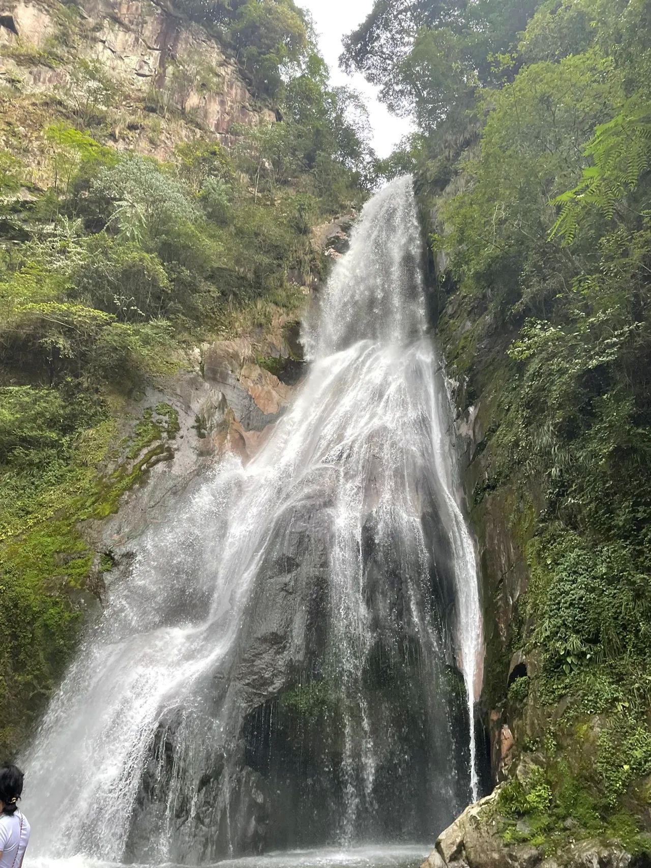 瀑布从48.2米的高空飘落下来,恰似一副用水珠做成的帘子,因而得名珠帘瀑布。水流在坠落的过程中,水分子撞击石块产生大量的负氧离子。