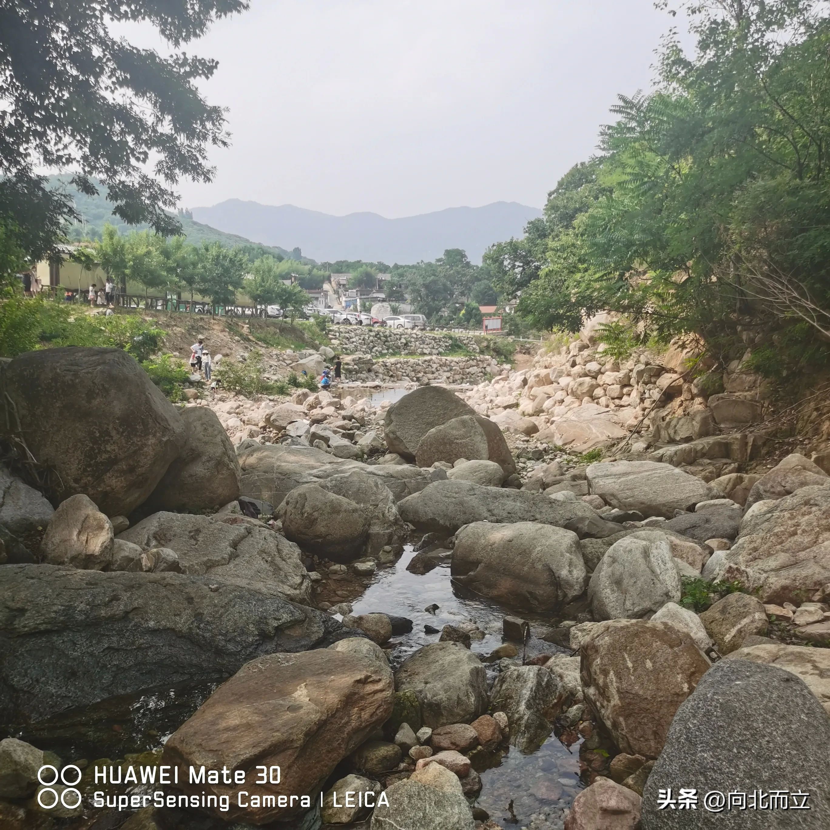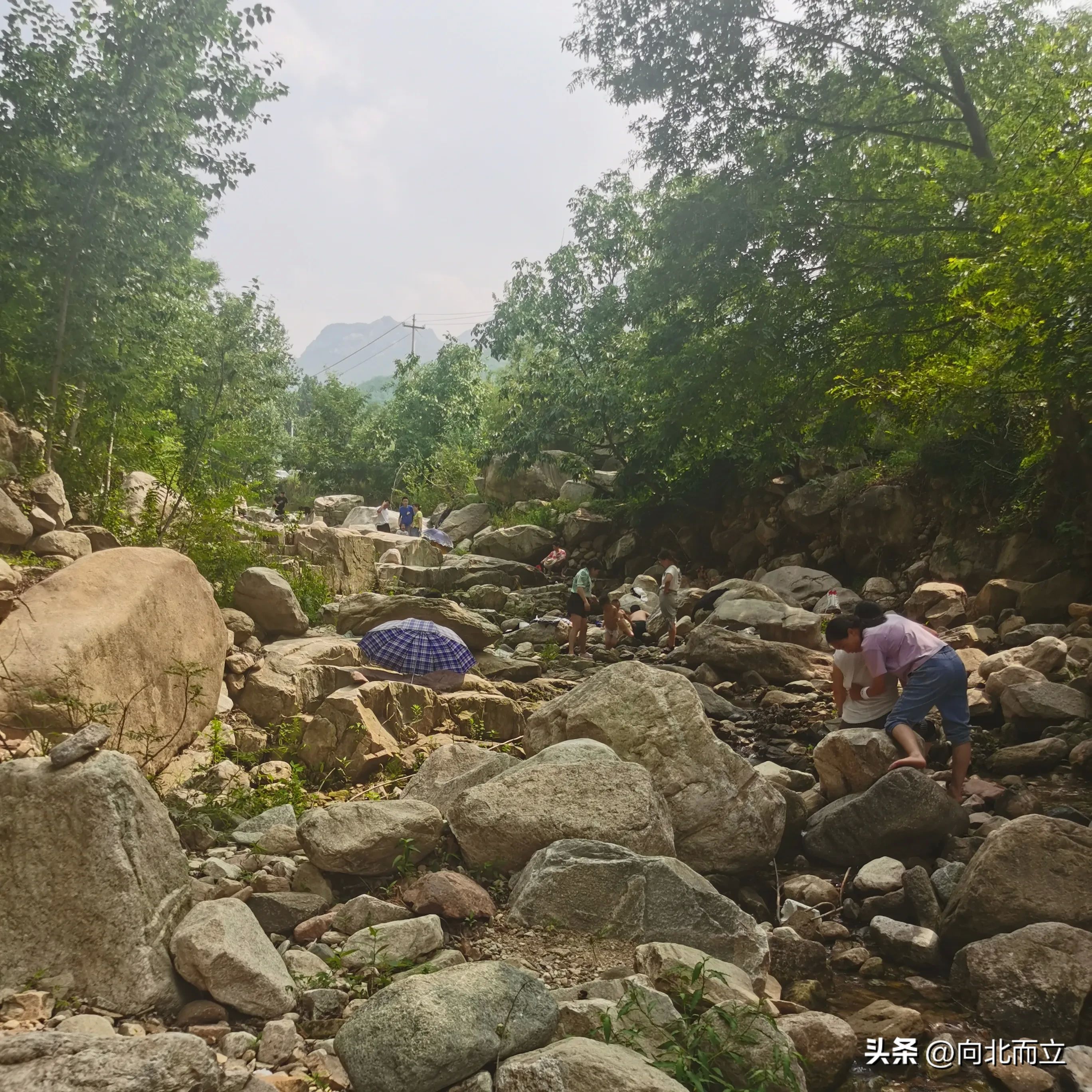 这次尝试多走一段,以往最多走到济南和泰安搭界的山顶,这次过山顶往前一段,有个沙岭村,说是泰山挑山工的发源地,河边有条小溪,溪流水不大但是很清澈,水也较凉,在树荫下,时不时一阵微风吹过,最热的两三点倒也不觉得热。