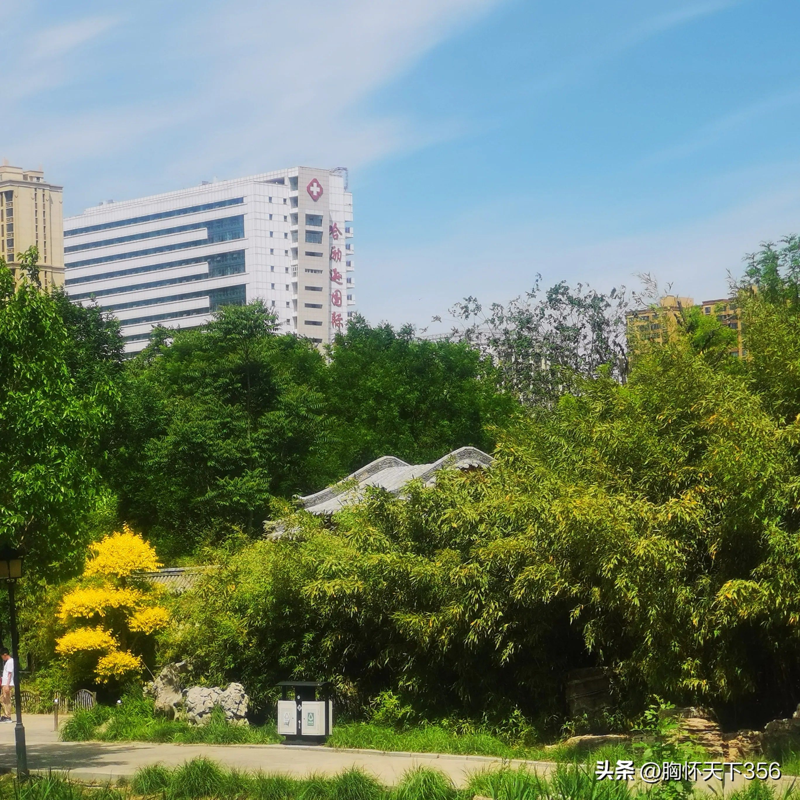 有绿地,草花竹灌木松杨等错落有致,有水,西面的大水面和东侧的一圈窄水沟连为一体,里面有金鱼乌龟,仿古石拱桥很别致,有各种建筑代表着不同时期的文化风俗,儒乡园、陋室等,反正砖石木草风格都有,有山原来的假山取名叫覌日塔(不过东面的公园一号的百米高楼影响了观日),有雕塑从董仲舒到水路边的游园戏水雕塑,还有反映体育、家庭等主体的雕塑,有石雕有金属雕,反映的特色就是汉朝古韵为多。