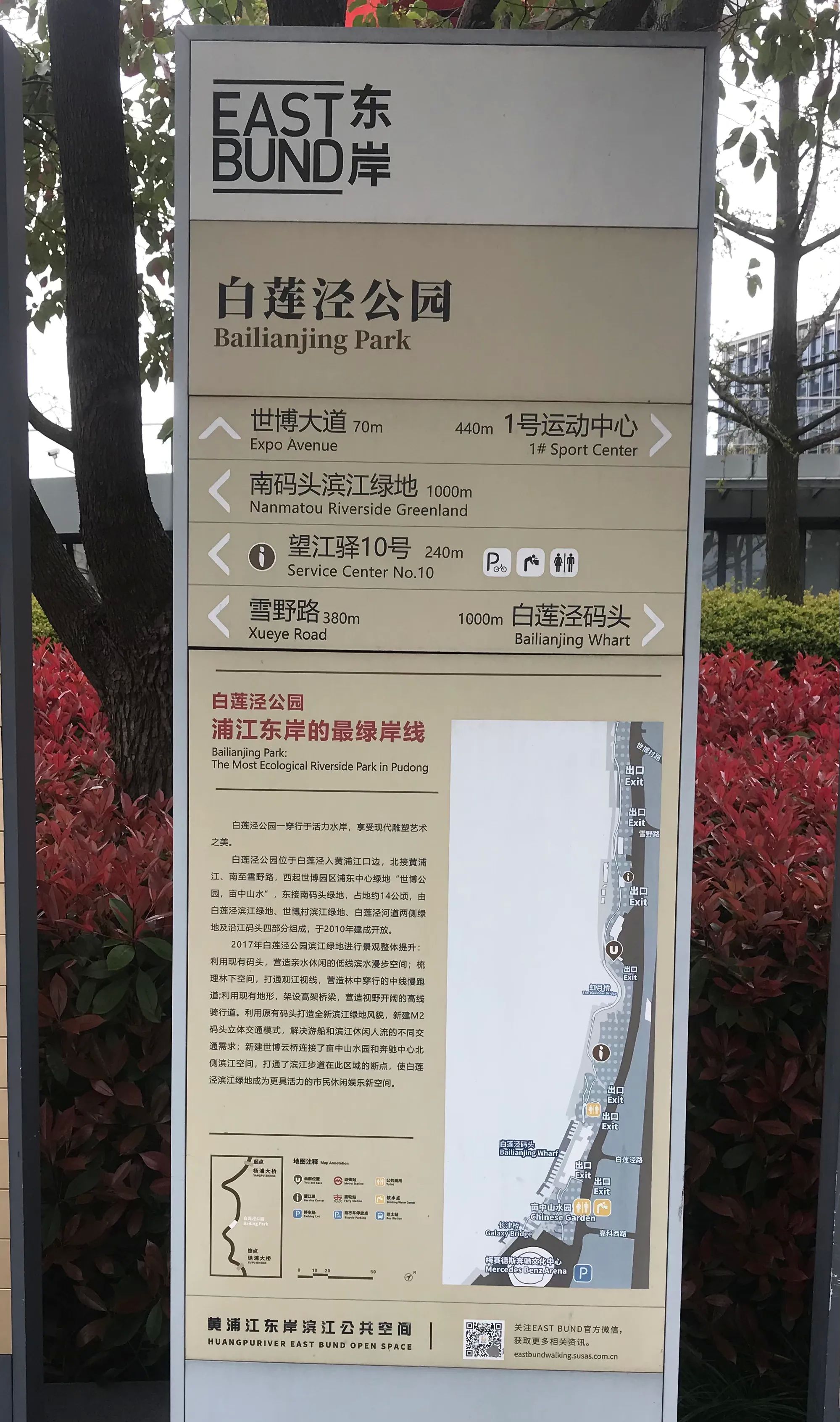 黄浦滨江东岸的白莲泾公园位于白莲泾入黄浦江口边,北接黄浦江、南至世博大道,西起