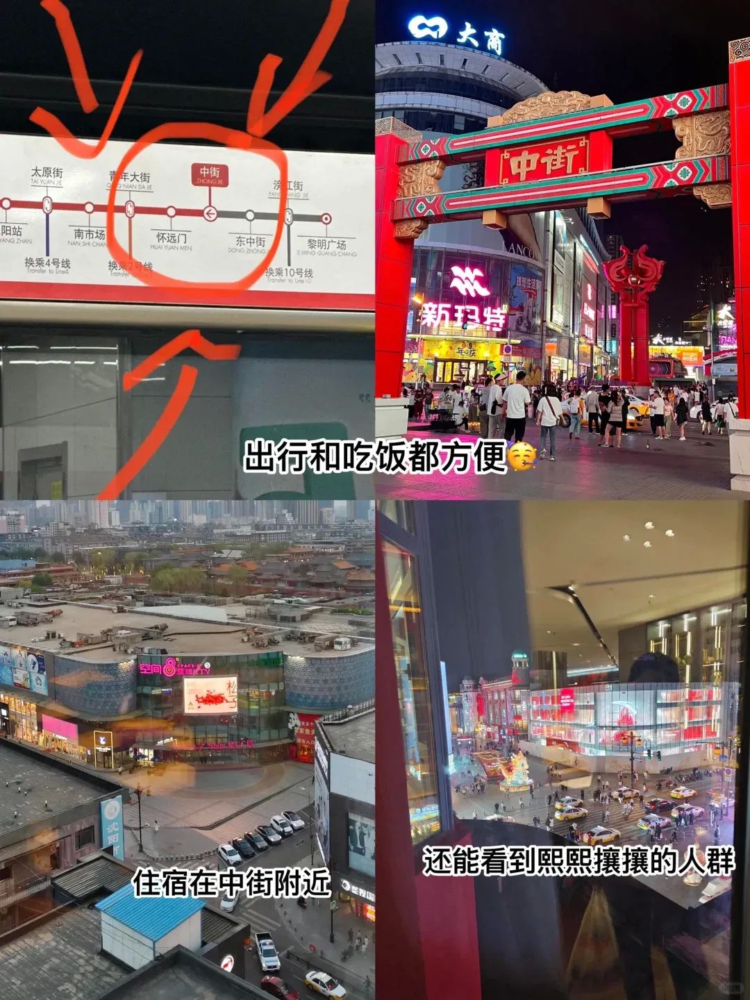 住宿选得好,旅行没烦恼!强烈推荐地铁1号线中街站周边。我初到沈阳,住在这附近,下楼转角就是琳琅满目的小吃摊,烟火气扑面而来。出门就是地铁站,无论是去看故宫的红墙金瓦,还是去中街感受繁华,都超便捷。