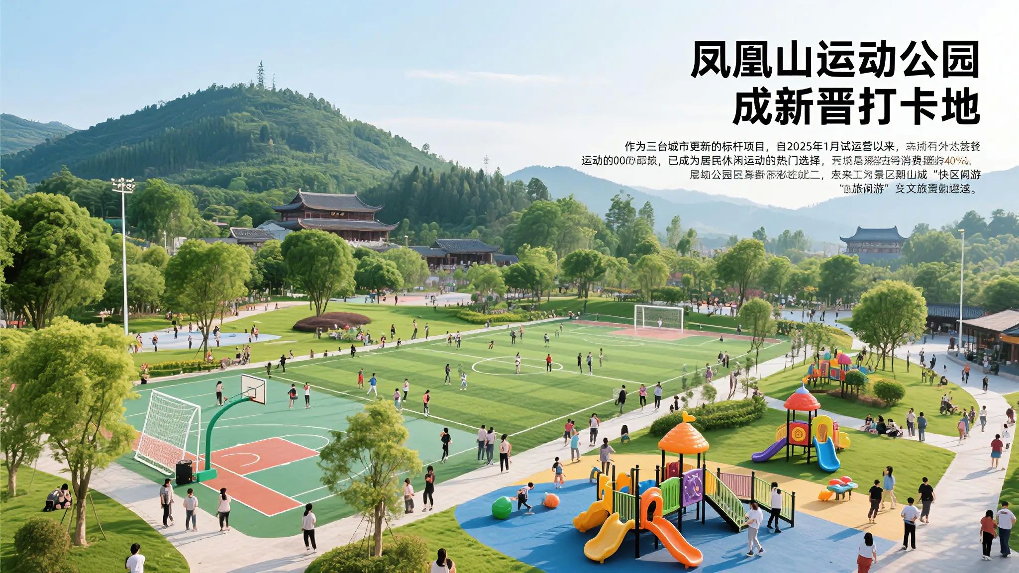 作为三台城市更新的标杆项目,凤凰山运动公园自2025年1月试运营以来,已成为居民休闲运动的热门选择。园内新增绿化面积3.2万平方米,配备足球场、篮球场、儿童游乐区等设施,日均接待量突破2000人次,周末更是达到5000人次,带动周边餐饮消费增长40%。目前,公园二期工程正加速推进,未来将与潼川古城、云台观等景区串联,形成“快旅慢游”的文旅产业带。