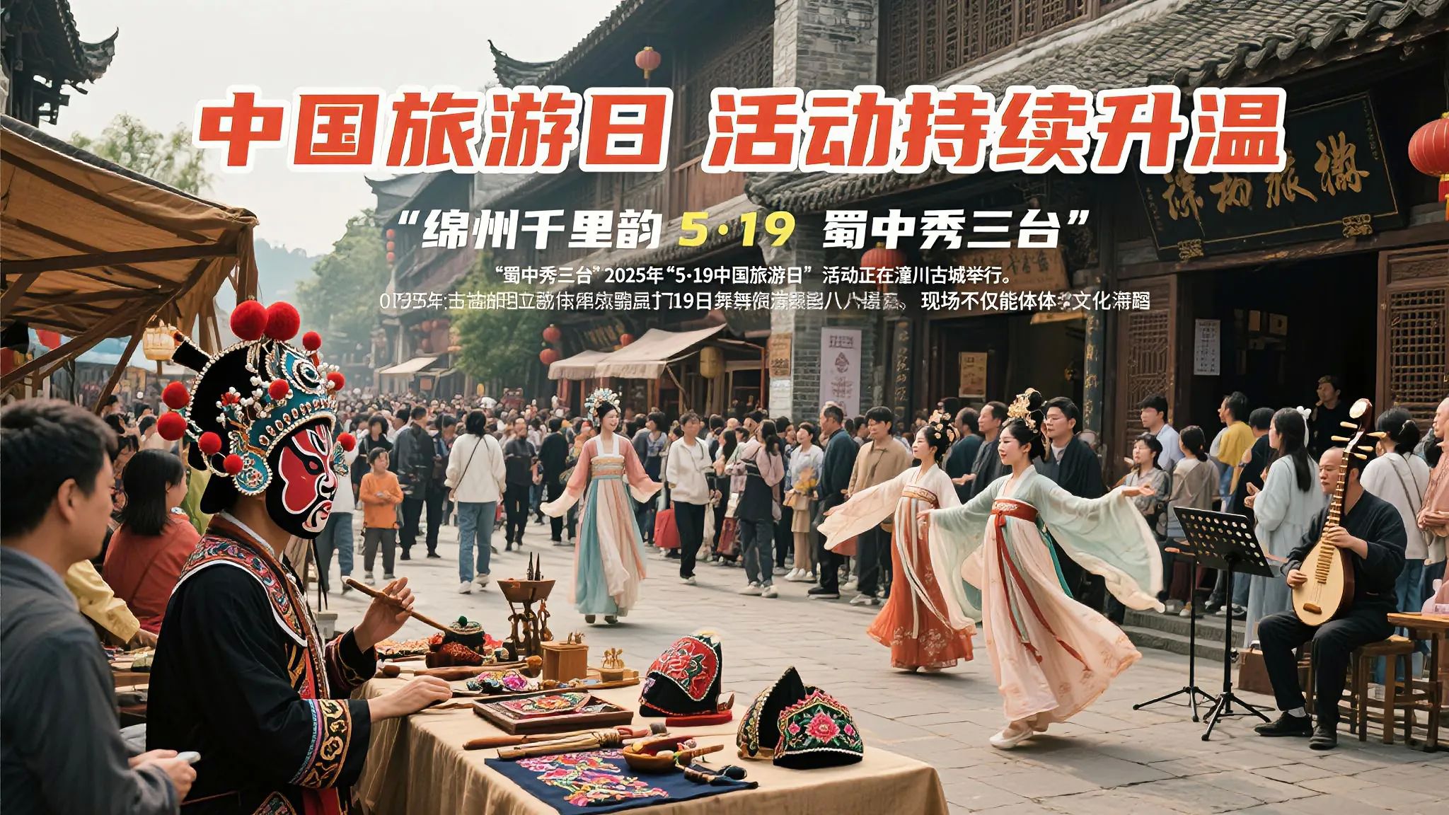 “绵州千里韵 蜀中秀三台”2025年“5·19中国旅游日”活动正在潼川古城举行。现场不仅能体验沉浸式古城漫游、打卡杜甫草堂等八大景点,还能观赏川剧盔头制作、羌族刺绣等非遗技艺展示,以及汉服舞蹈、民乐表演等文化盛宴。19日当天,更有盐亭民乐歌曲串烧、民俗舞蹈等限定演出轮番上演,吸引了众多游客驻足。