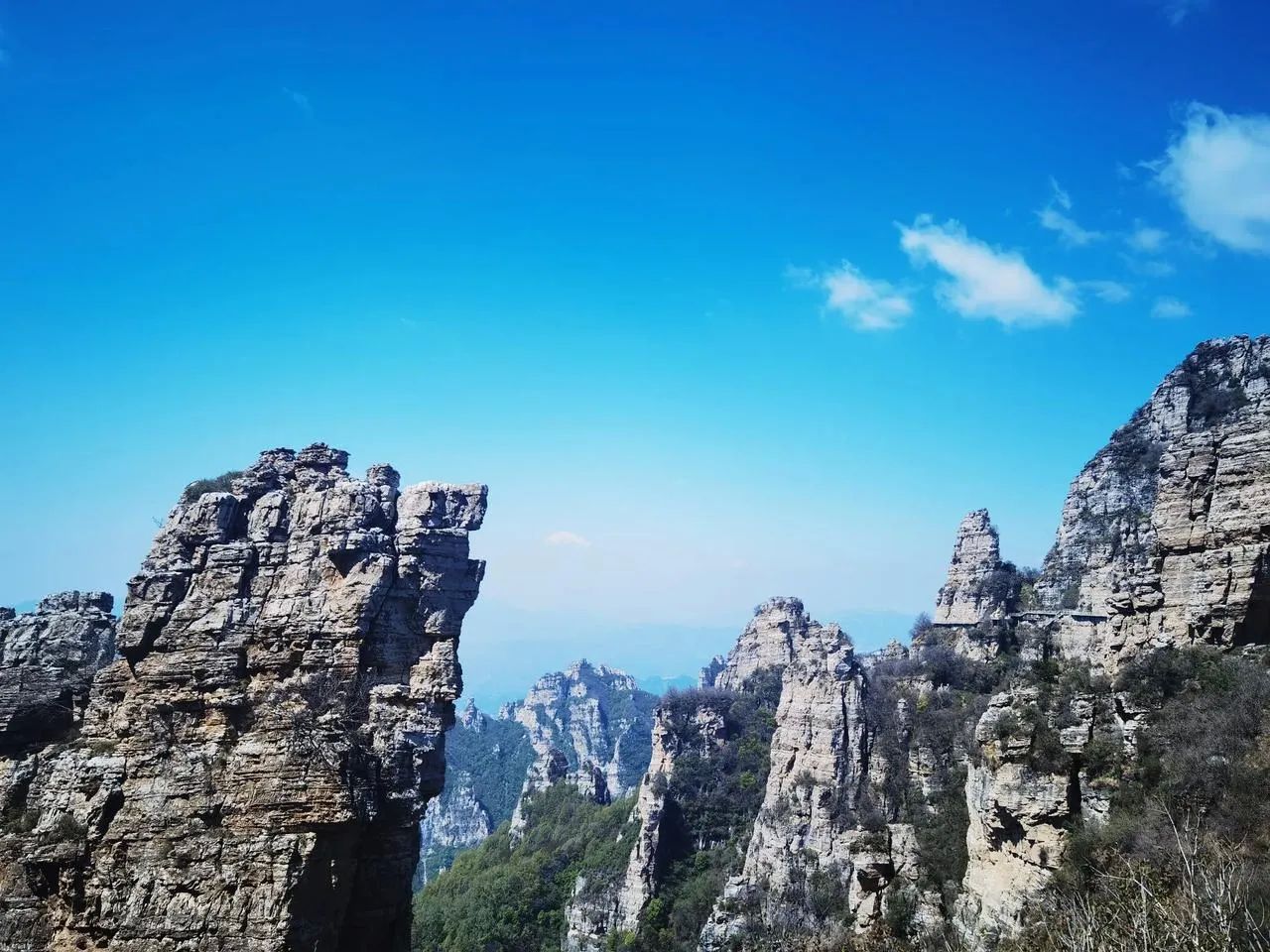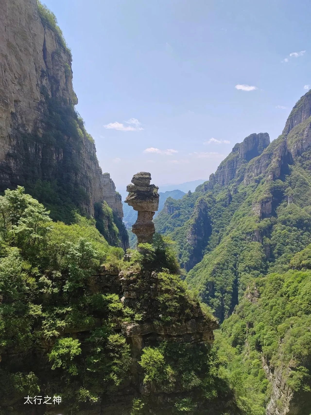 白石山有些奇石,最著名的叫“太行之神”,说是女娲补天时,找不到支撑四极的柱子,于是就砍下神鳌的四足来替代。太行之神就是支撑北方的神鳌足。