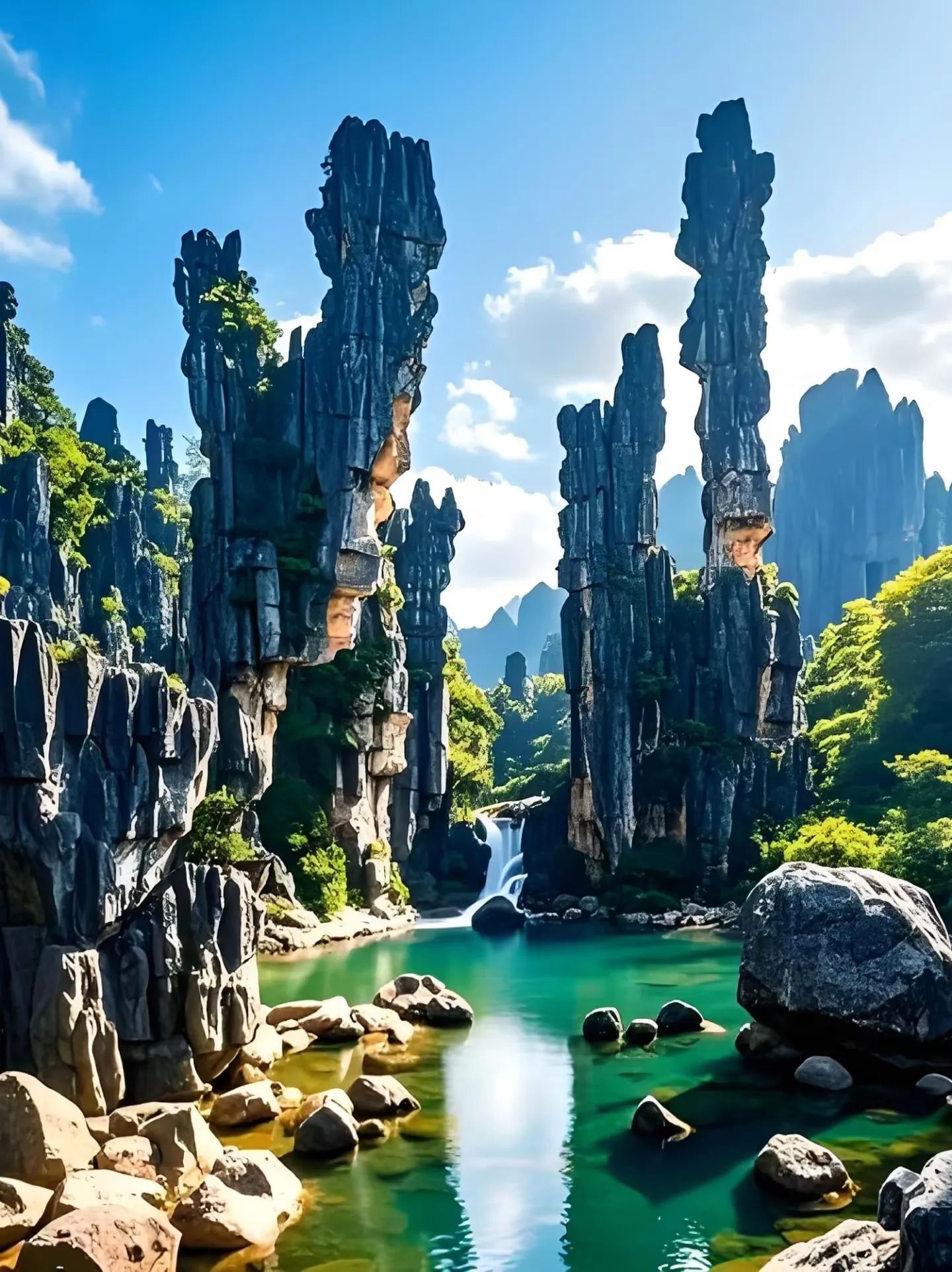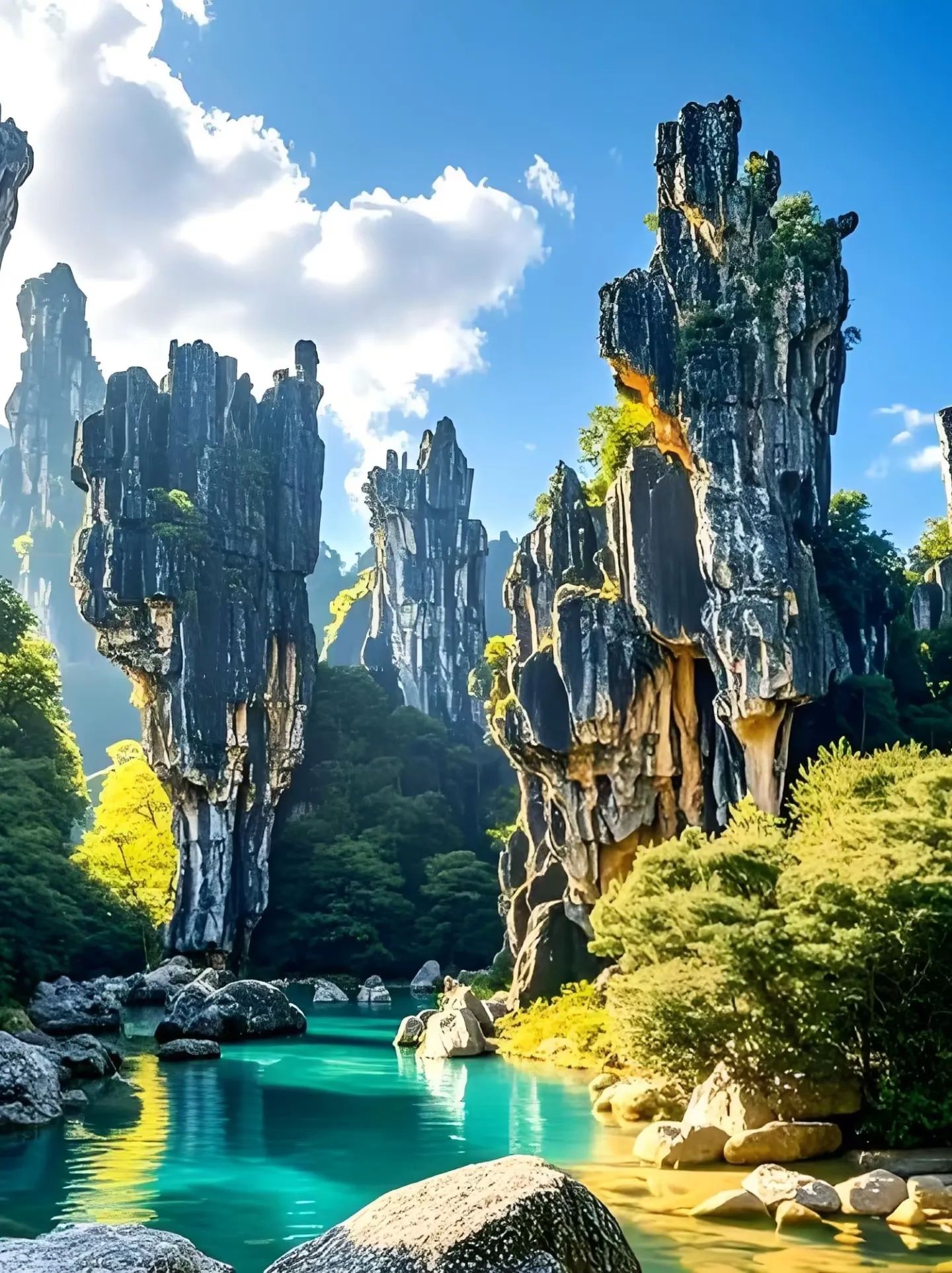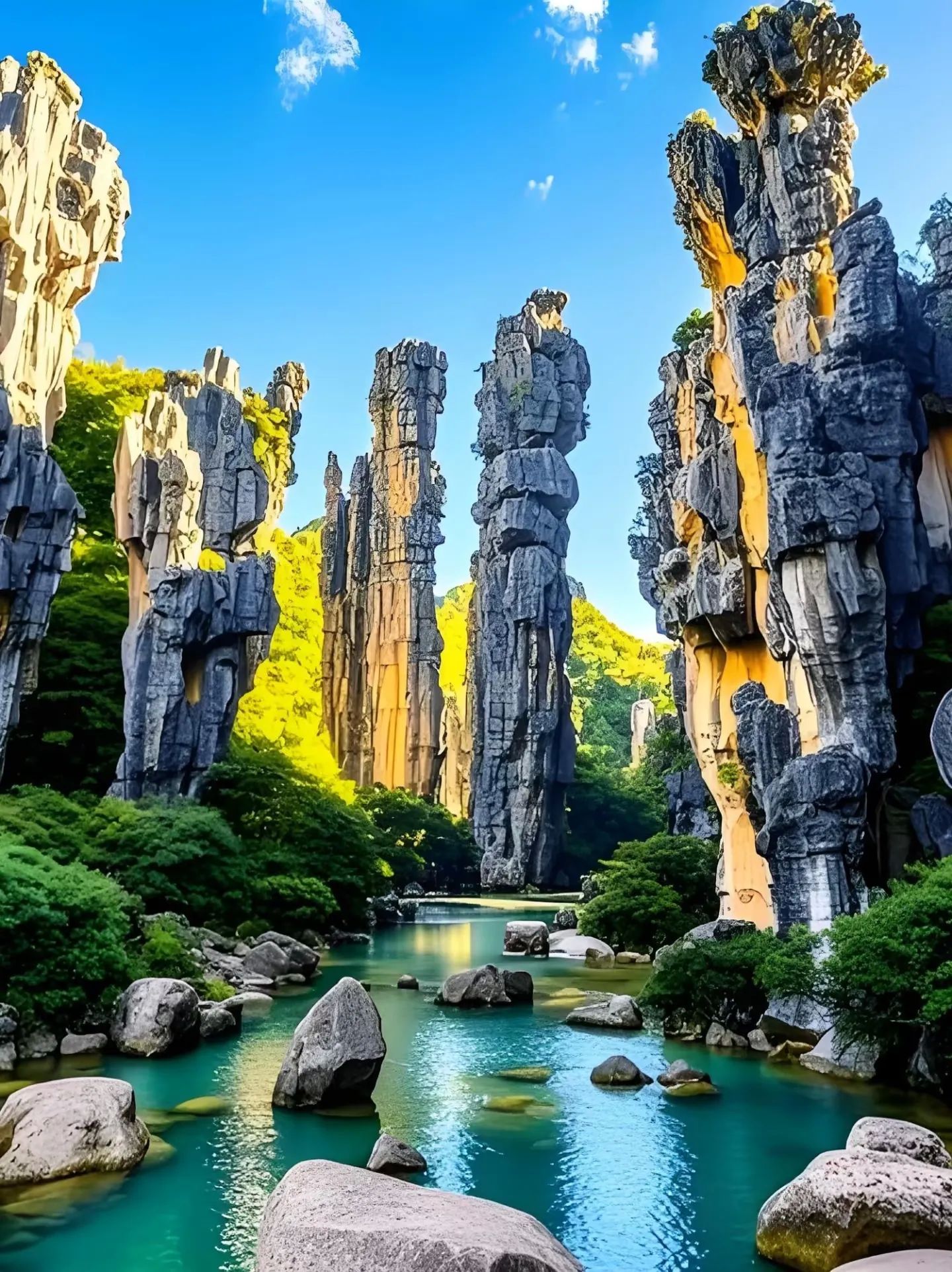 水上石林:石在水中立,水在石间流,一步一景。 可寻找印有自己生日日期的“数生步”石头(365块),许下心愿。