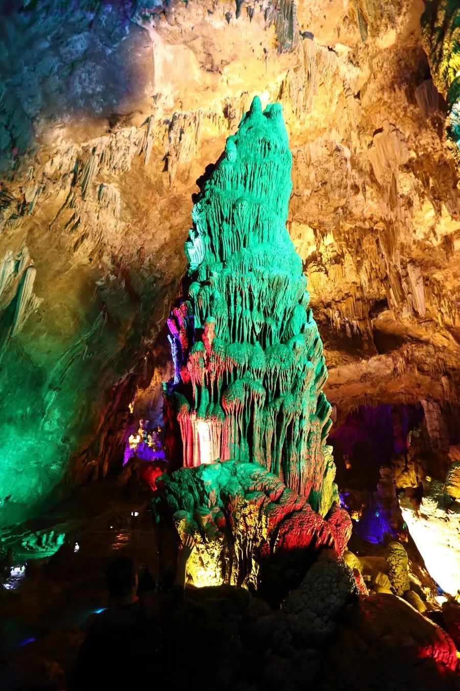 天星洞溶洞:天然溶洞内钟乳石密集,灯光下有如“地下宫殿”。