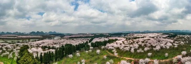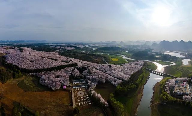 在平坝樱花园附近,每到樱花盛开的季节,民宿便被粉色的花海包围。