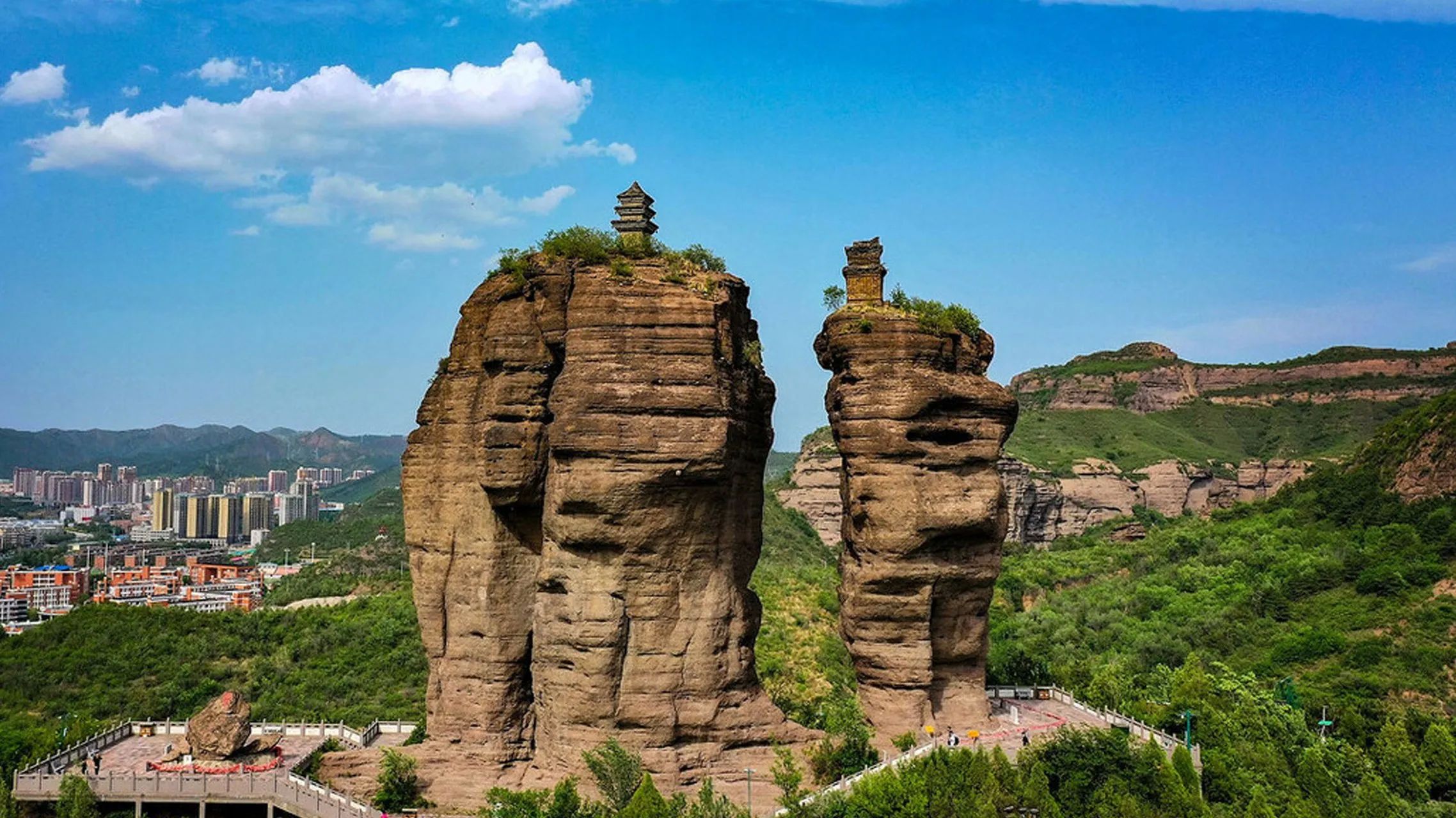 - 双塔山:山奇、水奇、林奇、石奇、塔奇、洞奇,大自然的鬼斧神工造就了奇特的景观,景区内山林与沟壑优美,溪水潺潺流淌,怪石嶙峋,鸟语花香,清朝多位皇帝和文武名臣曾多次前来登临。