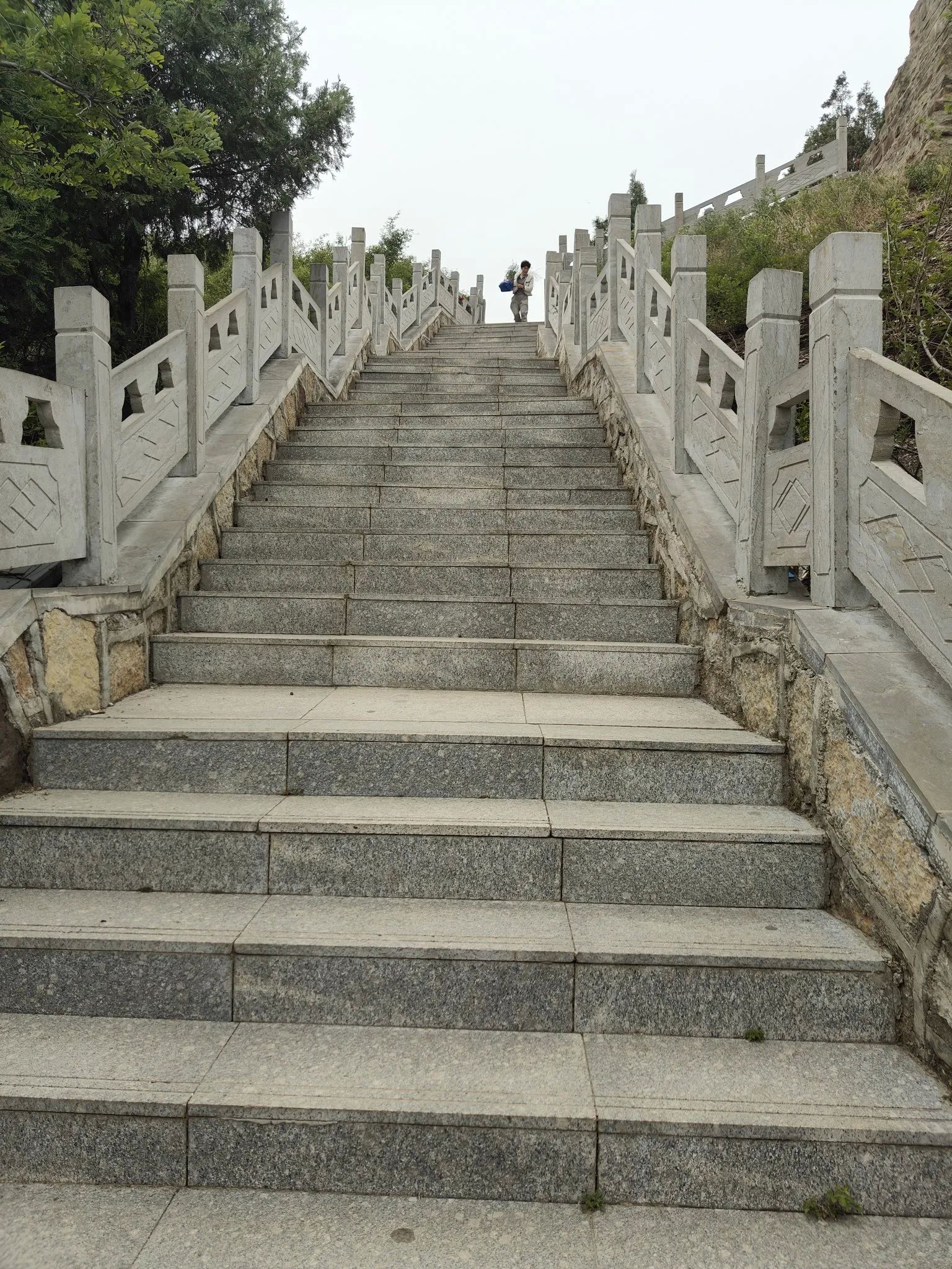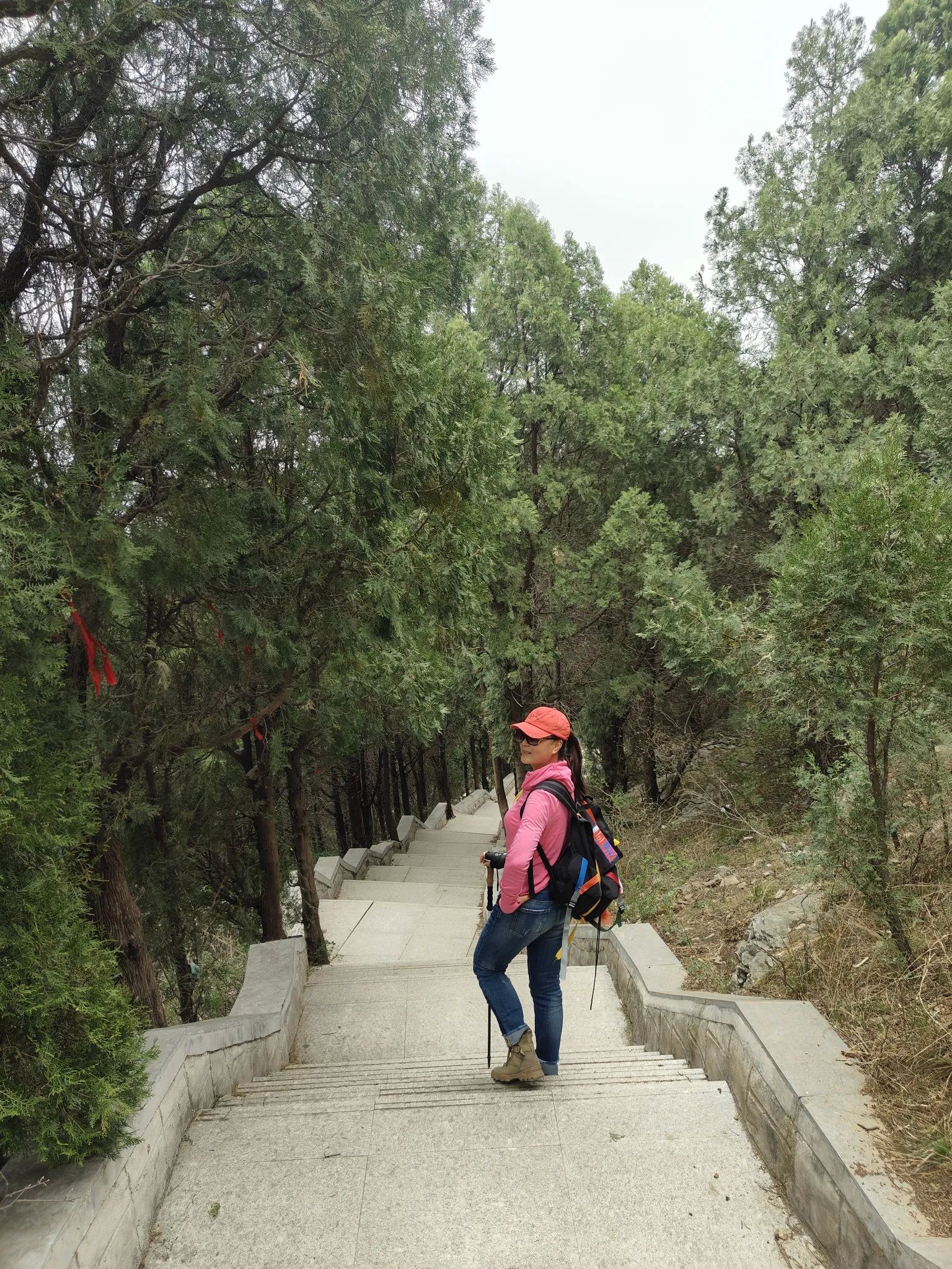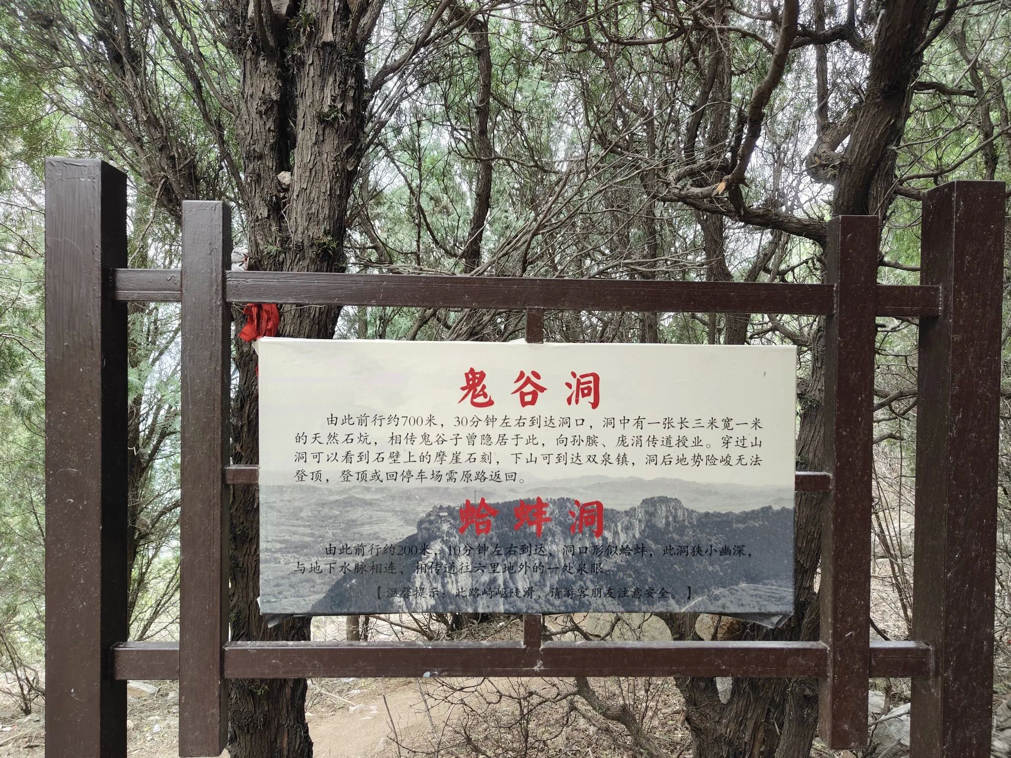 早上起来,天有些阴沉,天气预报说济南地区阴有阵雨,带好了雨衣,以防万一。因为今天路途远点,司机师傅又不太熟悉路,到达马山山下的停车场的时候已经十点半多了,领队带我们抄了小路进山,不一会儿就到了半山腰的第二停车场,从这里开始上山,一路都是石板砌的台阶,整齐规整,路边植被茂密,古树参天,还设有垃圾桶,有景点简介和指示牌,有一种仿佛进入景区的感觉。半山腰有鬼谷洞、鹰嘴石、一线天等多个景点,可选择性游玩。
