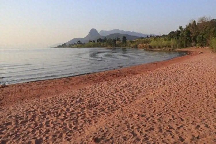 1.红沙滩。湛蓝天空下的红色沙滩,美丽如画。据说是国内唯一的粉红沙滩,免费。抚仙湖边有一片红色的土,区别于常见的白色沙滩,看上去是粉红色的,实际上是砖红色加粉红色的结合,比粉色再深一点。早晨起来看日出升起湖平面,霞光照进红色沙滩很漂亮,这里风景迷人,湖岸鲜花盛开,湖面海鸥展翅高飞,红沙滩与五彩斑斓的水山,交相辉映,是度假散步的好地方。