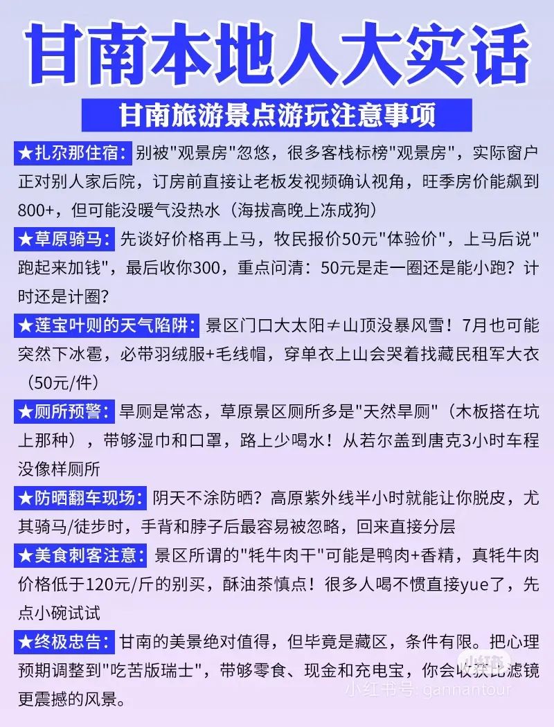 甘南部分景点交通不便,建议选择当地靠谱的包车或跟团游,如果自驾,提前了解路况和天气。