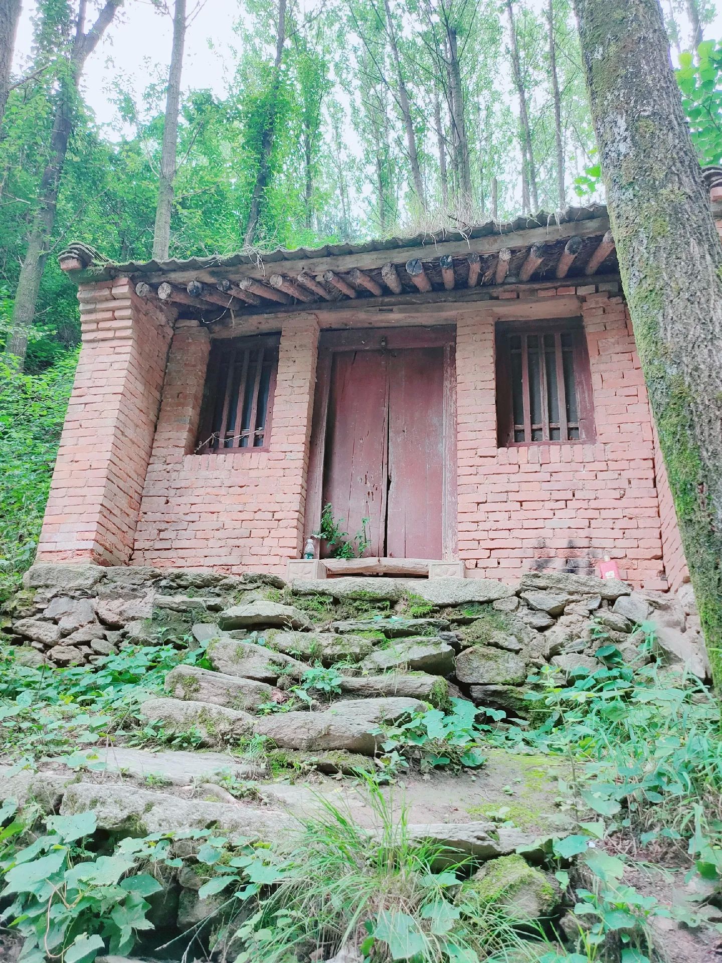 虽然登山有些艰难,但好在风景绝佳。峪中千峰叠翠,景色幽美。古树苍虬盘驳,幼林欣欣向荣。一路上行,可见几处简易土地庙。规模不大,但是香火很旺。据说每年农历七月初十都有庙会,当地山民会前来参加祭拜活动。