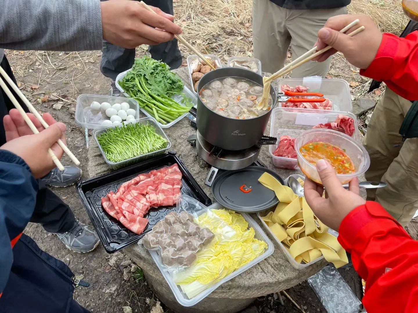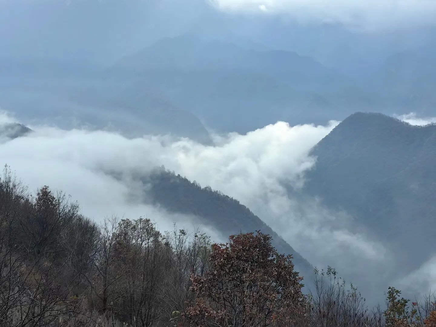 他们准备吃的,我和另外几个站在山巅拍照。不远处山沟的云海正在升腾,远望连绵的山脉,不少已经白头,或许是已经结冰,或许是那里已经下雪,真正是十里不同天,这里是深秋,那里已然是初冬。细看这一个衰败不算衰败;如果叶子黄了或红了、落满了山间,草也枯了、花也败了、果也掉了、水也小了、天也高了、云也淡了、风也大了、远处的山头也白了、人也少了、鸟也悲啼了,把这些所有的衰败堆放在一起,那就是一副秋景,反倒别致有意。所以说人要心态美,不管是春天、夏天、秋天或者是冬天,就能发现各美其美,美美与共。