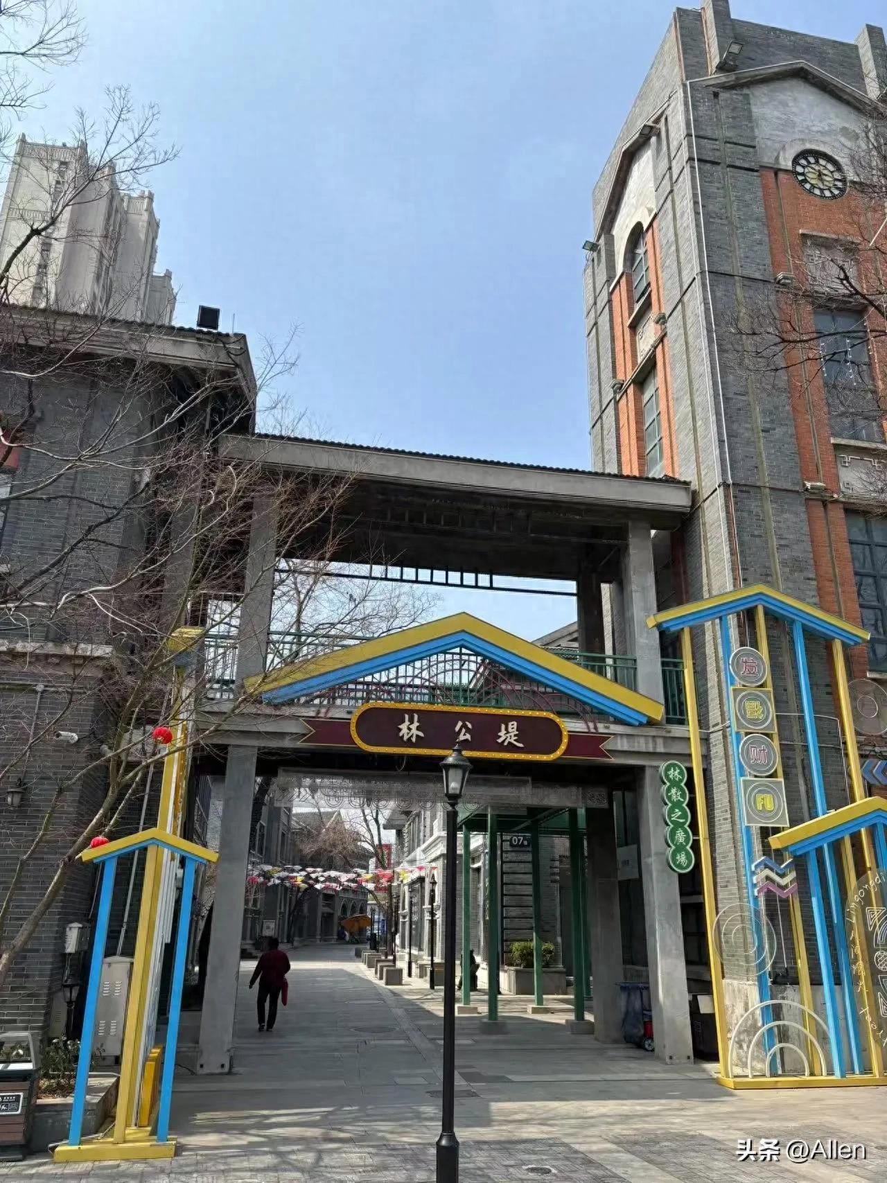 特色牌坊:在街区门口高高耸立着一个特色牌坊,牌坊立柱为青灰色砖面,飞檐翘角、小瓦覆顶,牌坊正中间写着 “林公堤” 3个蓝色大字,好似一个民国时期的钟楼,庄重大方,吸引游客驻足观看、拍照留念。