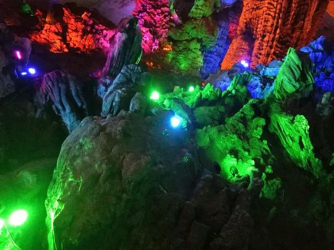 洪岩洞宛如大地珍藏的秘境。踏入洞中,凉意裹挟着湿润气息扑面而来。五彩灯光勾勒出钟乳石的轮廓,它们或如垂落的水晶帘,或似破土的灵芝,在岁月长河中凝结成独特姿态。水滴坠落声叮咚作响,宛如大自然的乐章,在空旷洞穴中荡起涟漪。沿着蜿蜒小径深入,光影变幻间,仿佛穿越时空隧道,每一处转角都藏着未知的惊叹,让人沉醉于这鬼斧神工的地下世界。