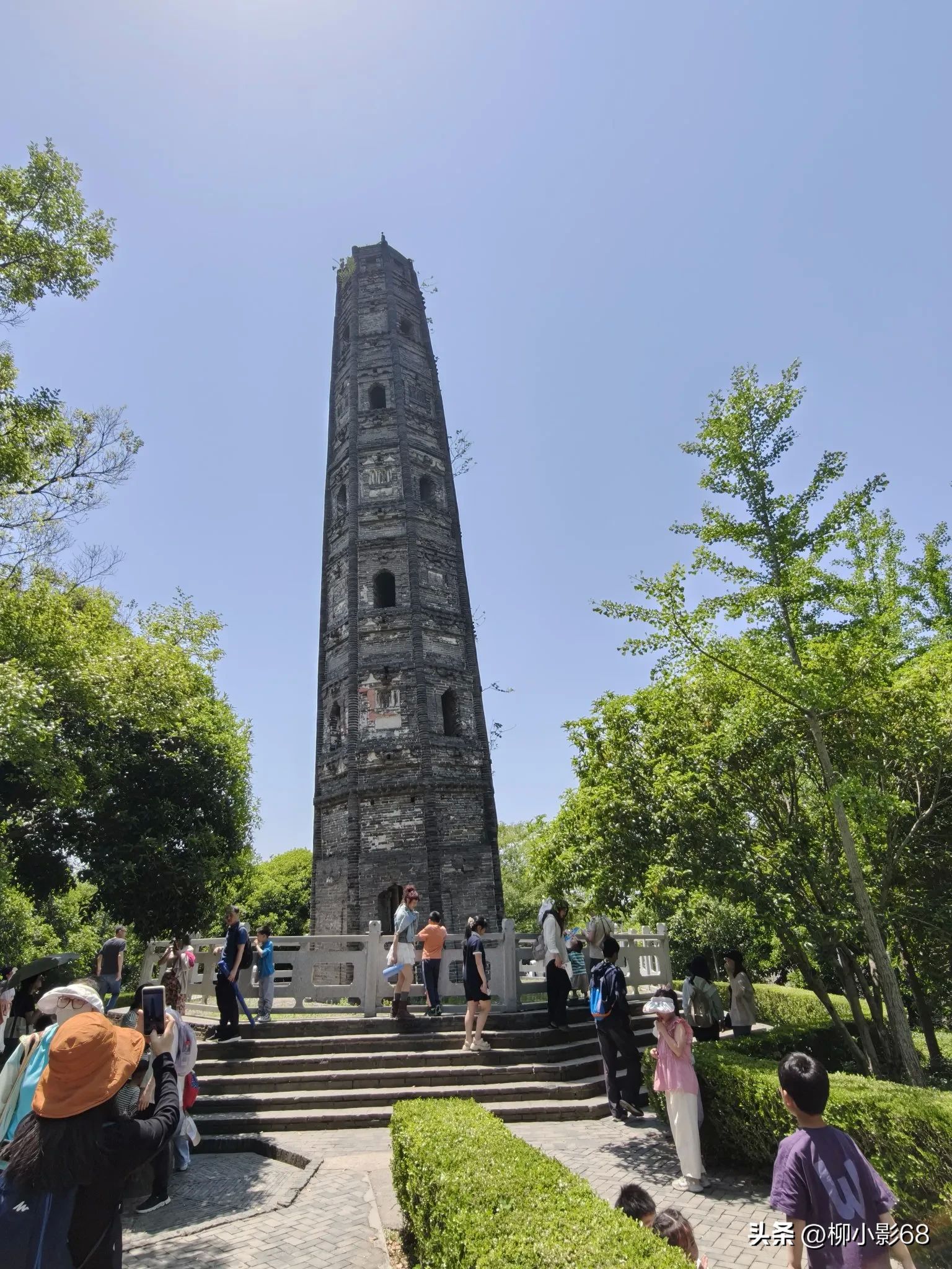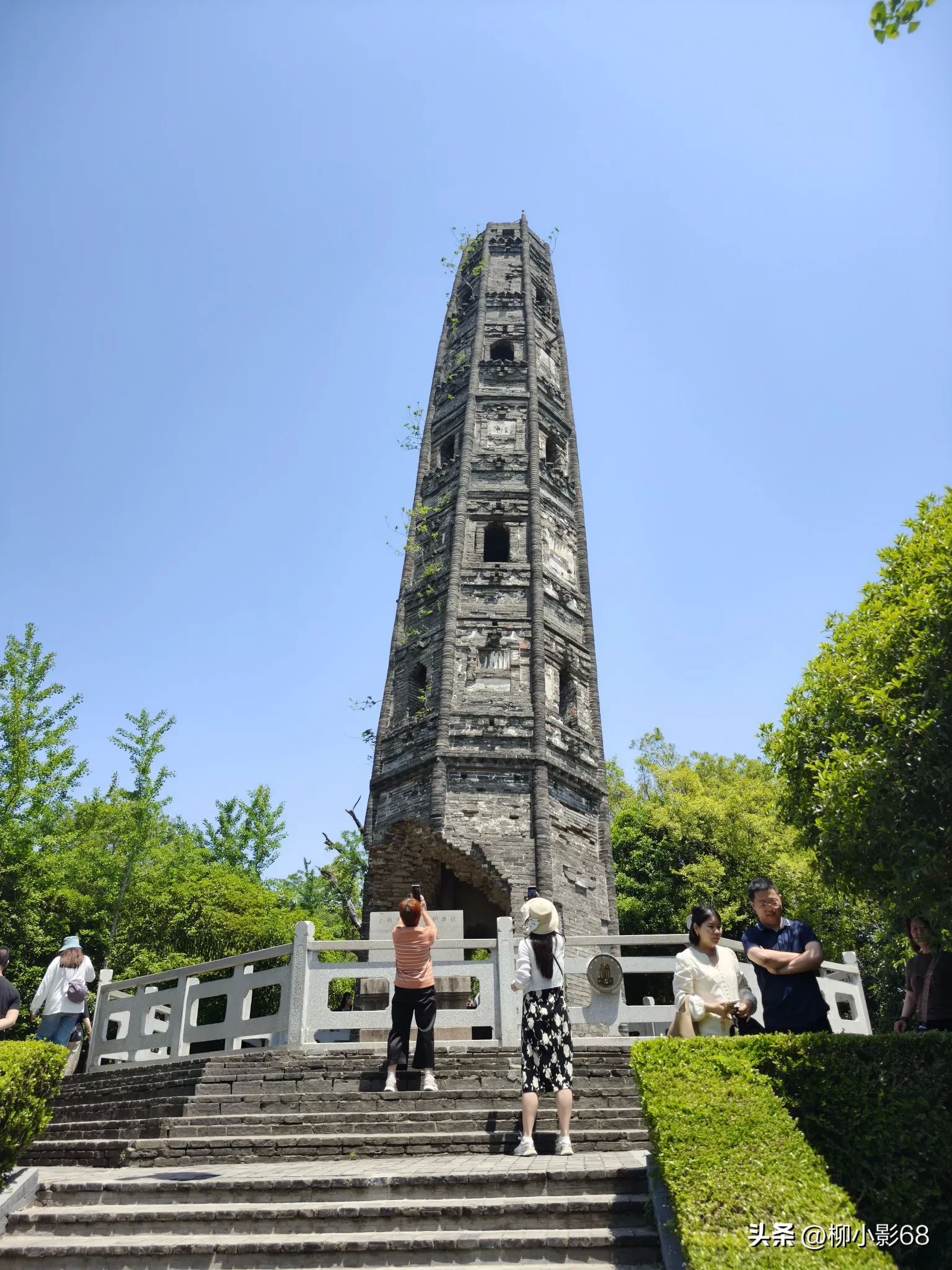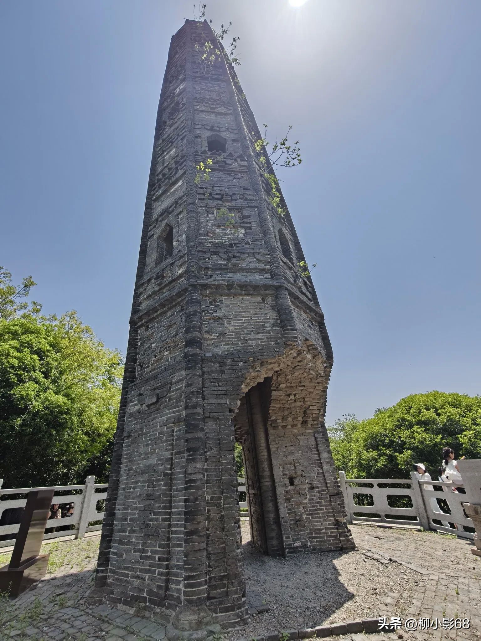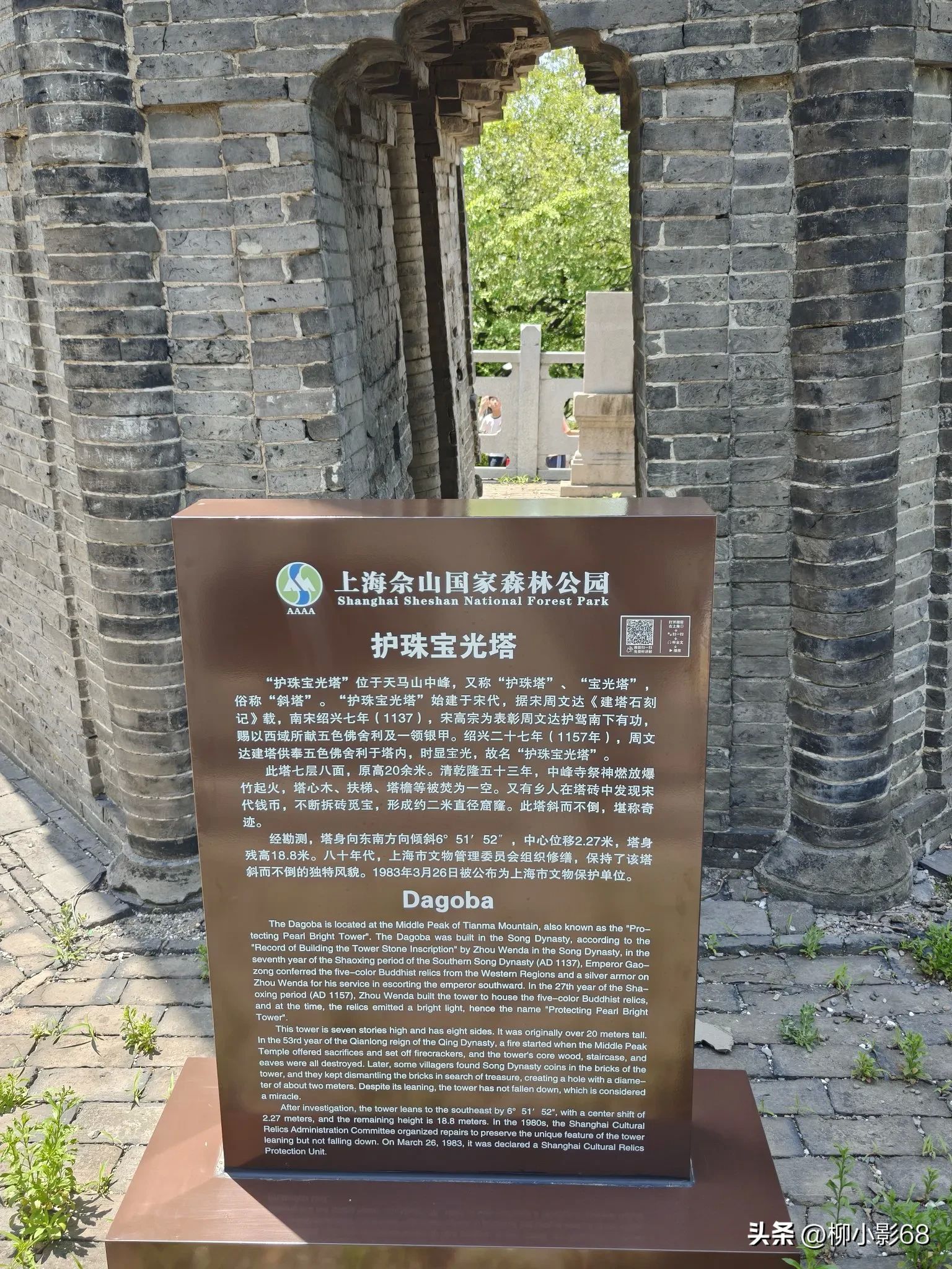 很多年前松江同学告诉我,天马山上有一座超过了意大利的比萨斜塔,被称为"世界第一斜塔“的斜塔。我一直半信半疑,今天来到山顶亲眼目睹:这座斜塔本护珠塔,又称护珠宝光塔,因藏有宋高宗赐予的五色舍利而得名。始建于北宋元丰二年(1079年),由砖木结构建成,七层八角,高约18.82米。乾隆五十三年(1788年),塔经历了一场火灾,塔顶和木结构被烧毁,仅剩砖砌塔身。此后,因后人在塔砖中发现宋代元丰古币,不断拆砖寻宝,导致塔基被挖出一个直径约2米的窟窿,加剧了塔身的倾斜。目前塔身向东偏离2.28米,倾斜度达7.10°,超过了意大利比萨斜塔。目前已入选中国世界纪录协会世界第一斜塔候选世界纪录。