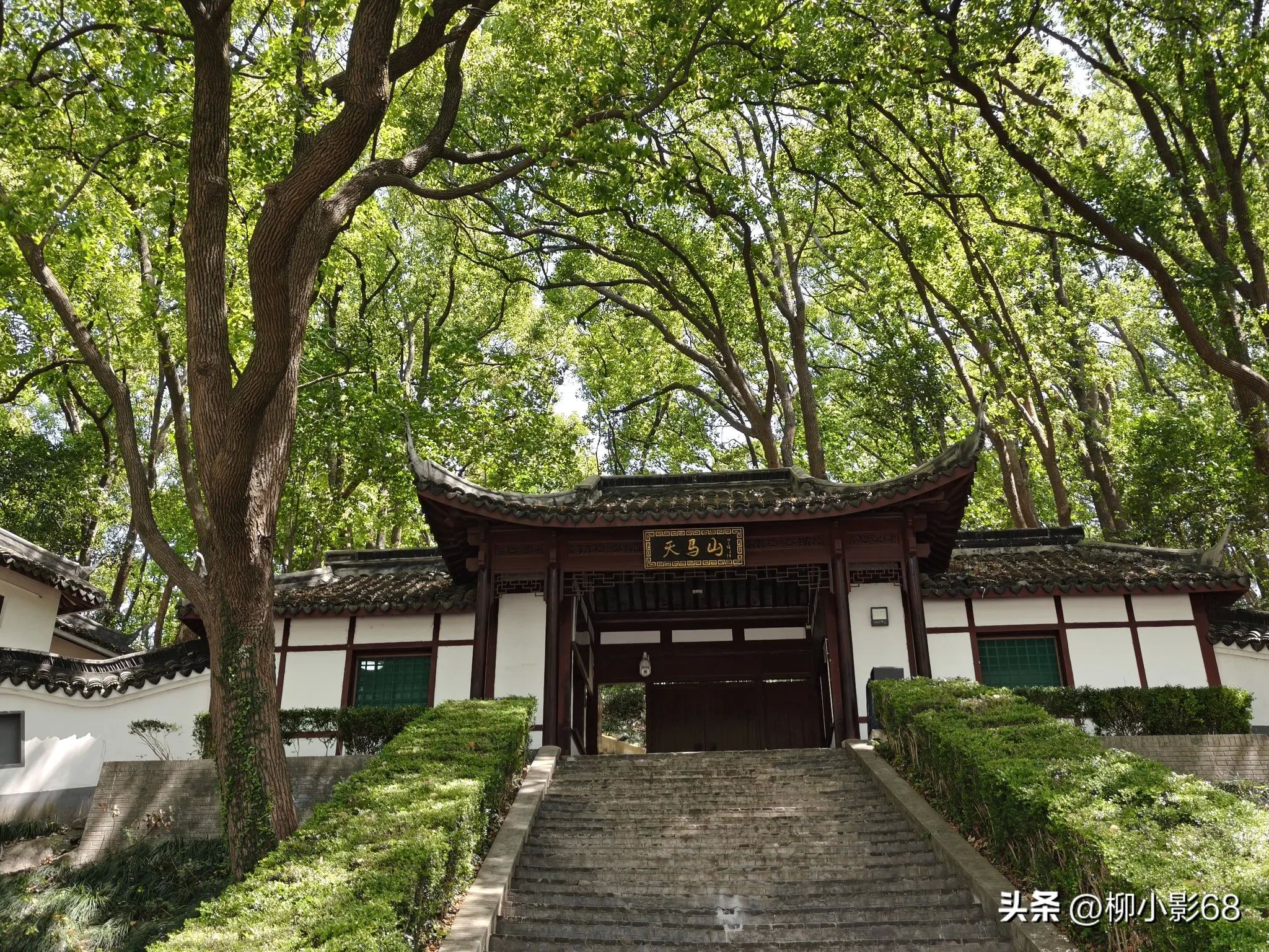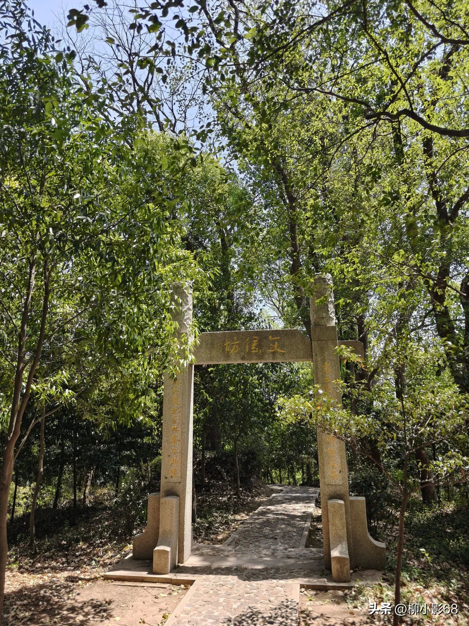 天马山除了有历史遗迹,还有原生态的自然风光,漫山的竹林深幽,古木参天,又野趣横生。沿着蜿蜒小径拾级而下,从被浓密的绿树遮阴的西门出来。(也可以从东门出)